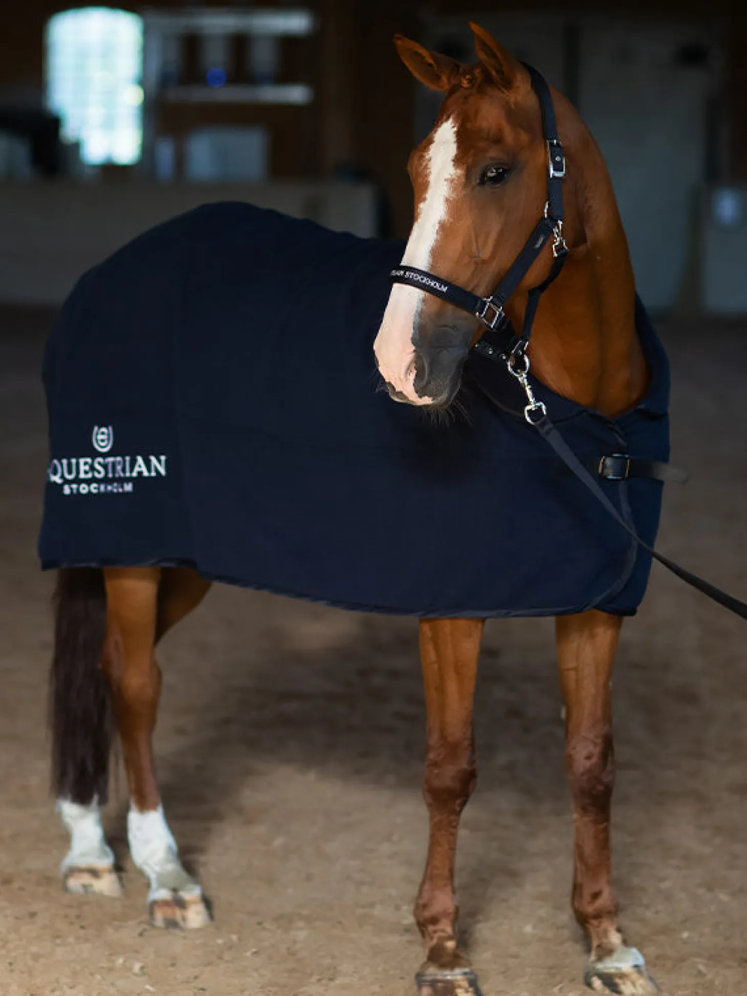 Wir stellen die Modern Tech Navy Wolldecke vor, ein atemberaubendes Stück Reitsportausrüstung, das Stil und Funktion kombiniert, um Ihr Pferd warm und komfortabel zu halten. Hergestellt aus einer Mischung aus 50 % Wolle und 50 % recycelter Wolle, ist diese Decke nicht nur weich und kuschelig, sondern auch umweltfreundlich. Die marineblaue Farbe der Decke ist klassisch und vielseitig und macht sie somit zu einer guten Wahl für jedes Pferd und jeden Reiter. Das Equestrian Stockholm Logo in Weiß an der rechten und linken Seitenecke verleiht der Decke einen Hauch von Eleganz und Raffinesse, während die marineblaue Satineinfassung für einen beständigen Abschluss sorgt.