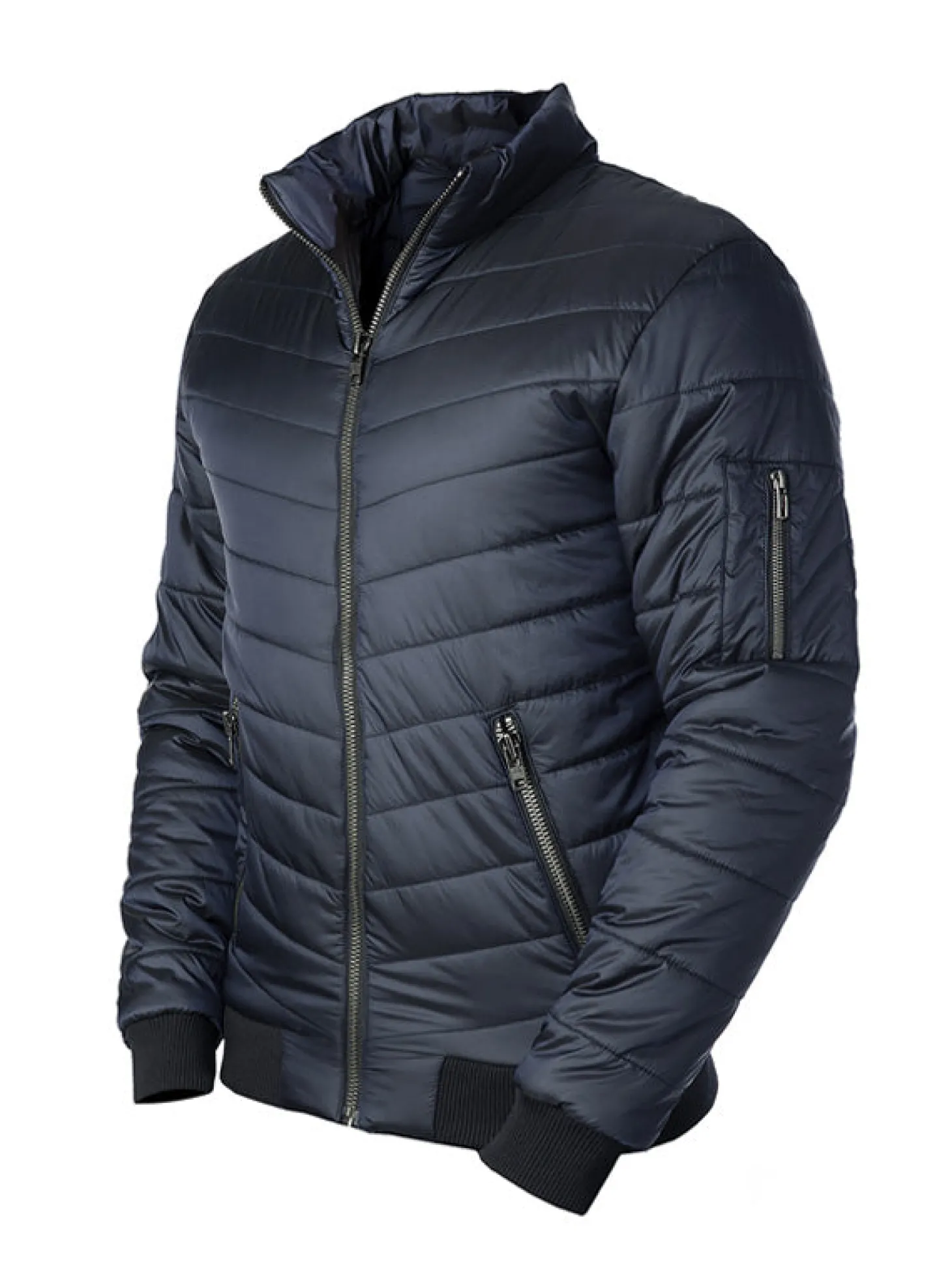 Das tiefe, dunkle Navy Blue und die chromfarbenen Details geben dieser Bomberjacke einen coolen, ausdrucksstarken Look. Die leichte Jacke hält dich selbst bei niedrigen Temperaturen dank des wärmenden Innenfutters angenehm warm.