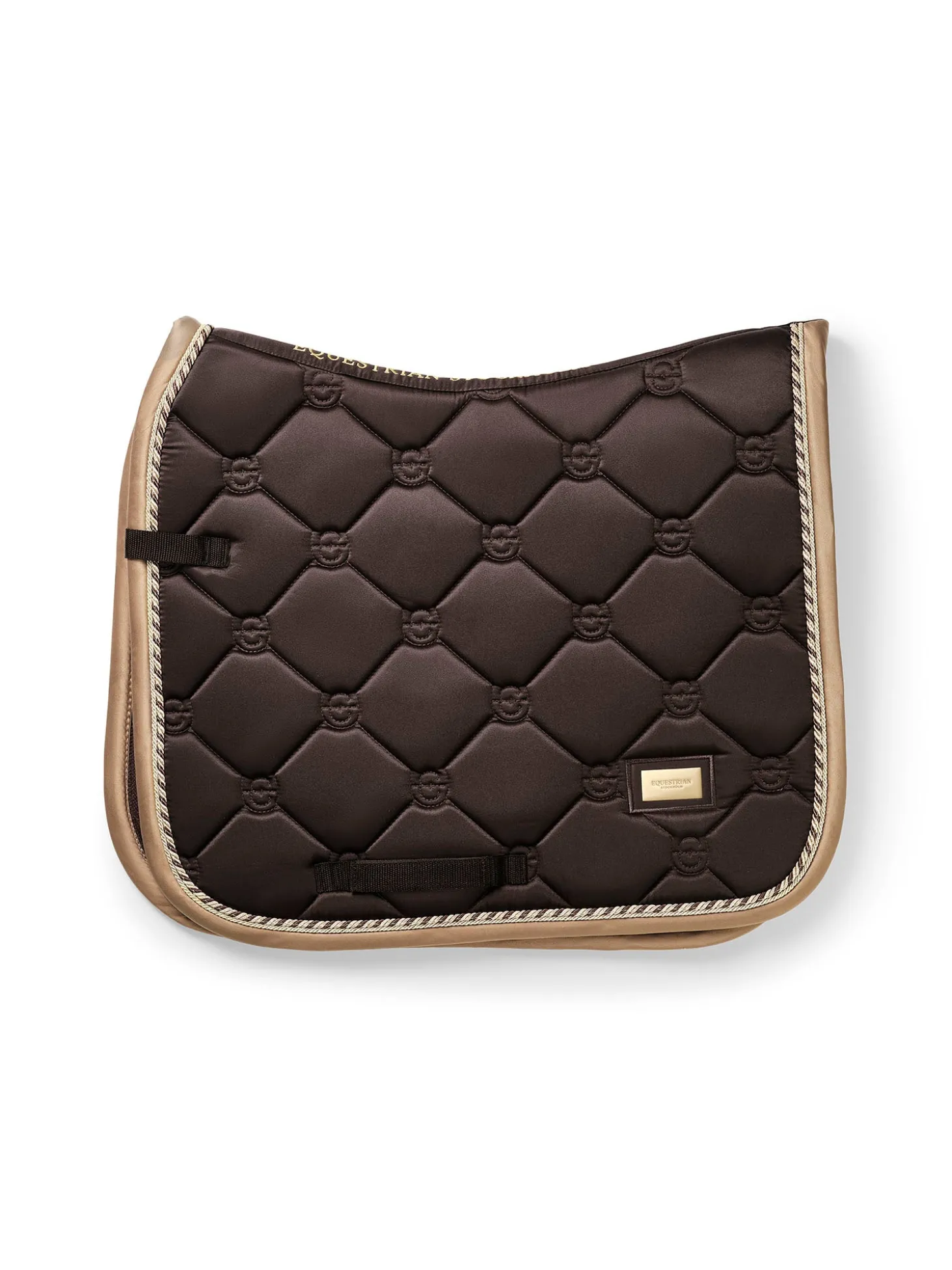 Die Golden Brown Schabracke ist ein echter Favorit! Die hochwertige Dressurschabracke in Shiny Dark Brown ist ideal für das Training. Das Innenmaterial trocknet besonders schnell und hält dein Pferd während des Trainings trocken. Die Schabracke besteht aus glänzendem, schmutzabweisendem Material mit schönen Details in Gold und einem Muster mit dem Logo von Equestrian Stockholm.