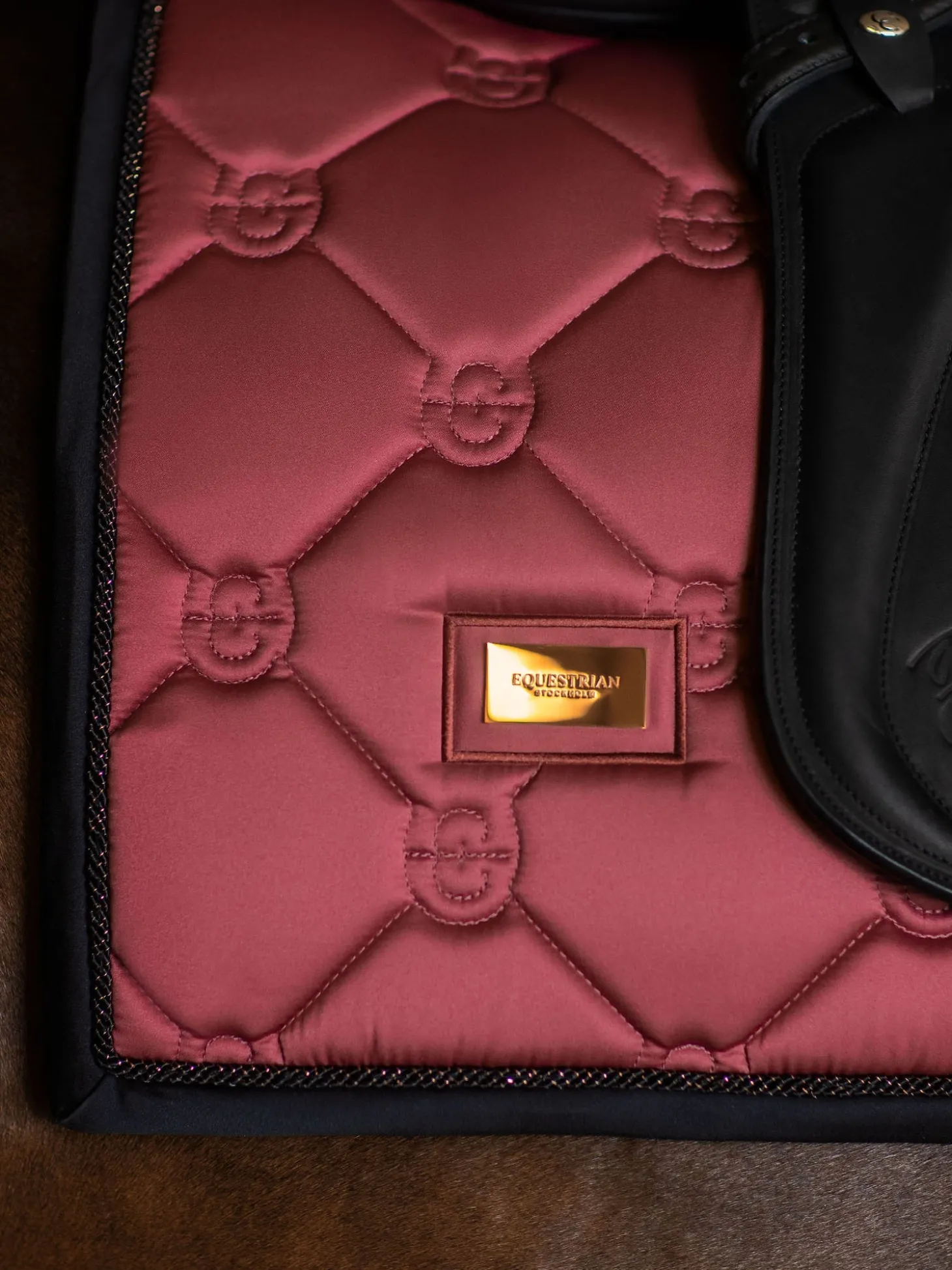 Elegante Schabracke in sanftem Rouge Rot mit schwarzen und roségoldenen Details. Verziert mit dem Equestrian Stockholm Abzeichen in Kupfer. Das Material ist mit High IQ cool comfort behandelt, wodurch die Schabracke schnell trocknet und Feuchtigkeit ableitet. Dadurch bleibt Ihr Pferd länger trocken und frisch. Kombinieren Sie die Schabracke mit anderen Teilen aus unserer Soft Rouge Kollektion für einen stilvollen Look von Kopf bis Fuß.