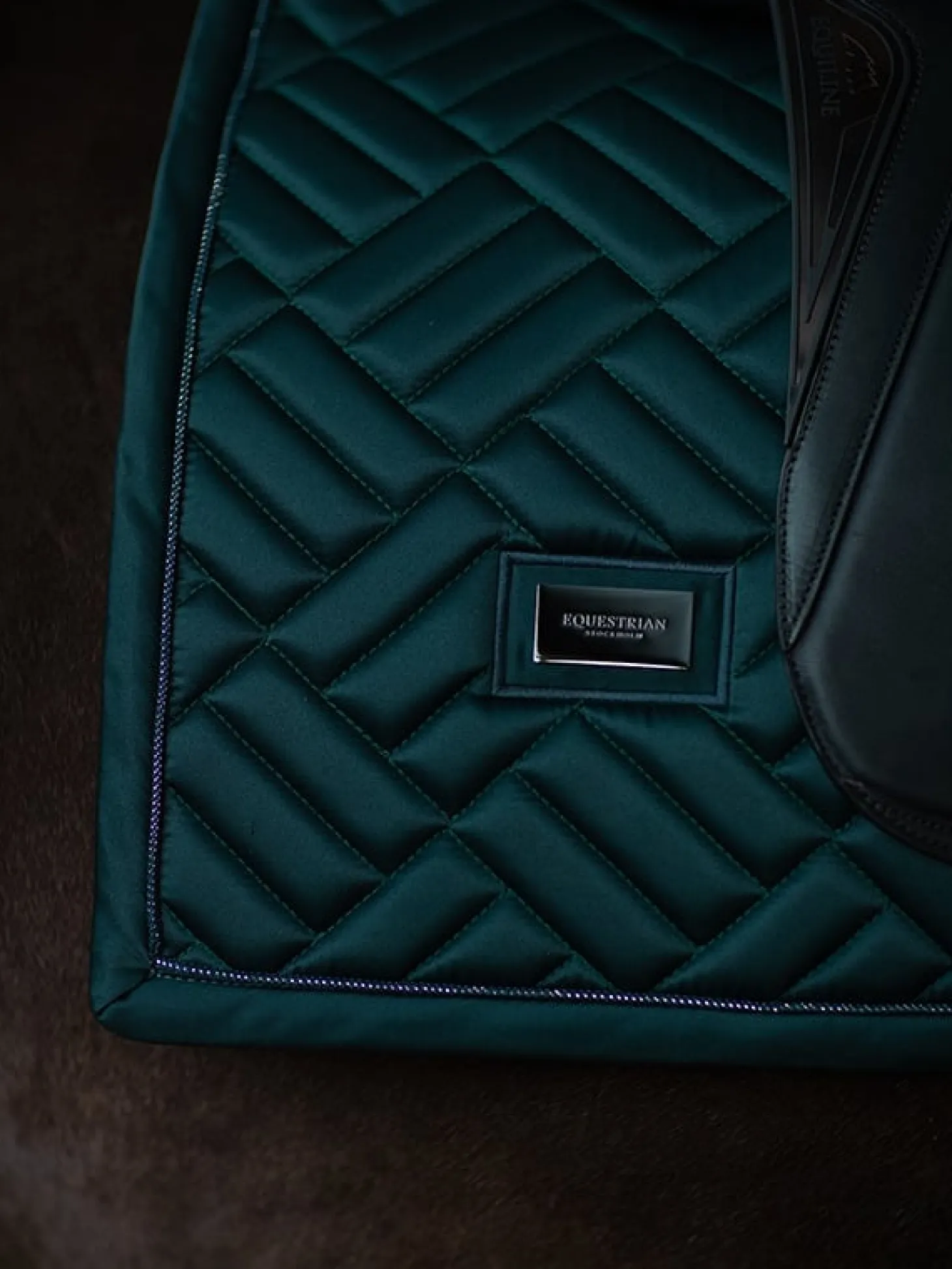Elegante Schabracke mit moderner Steppung in dramatischem Grün mit schwarzen Details. Verziert mit dem Equestrian Stockholm Abzeichen in schwarz. Das Bambusmaterial ist aufgrund seiner thermoregulierenden Wirkung das ganze Jahr über perfekt – kühlend im Sommer und wärmend im Winter. Außerdem ist es schnelltrocknend, feuchtigkeitsableitend und antibakteriell. Kombinieren Sie die Schabracke mit anderen Teilen aus der Dramatic Monday Kollektion für einen stilvollen Look von Kopf bis Fuß.