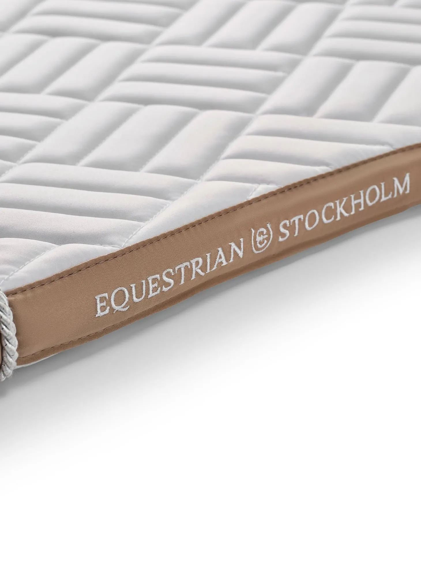 Details: Beigefarbene Einfassung mit weißem Equestrian Stockholm-Logo / Moderne Steppung