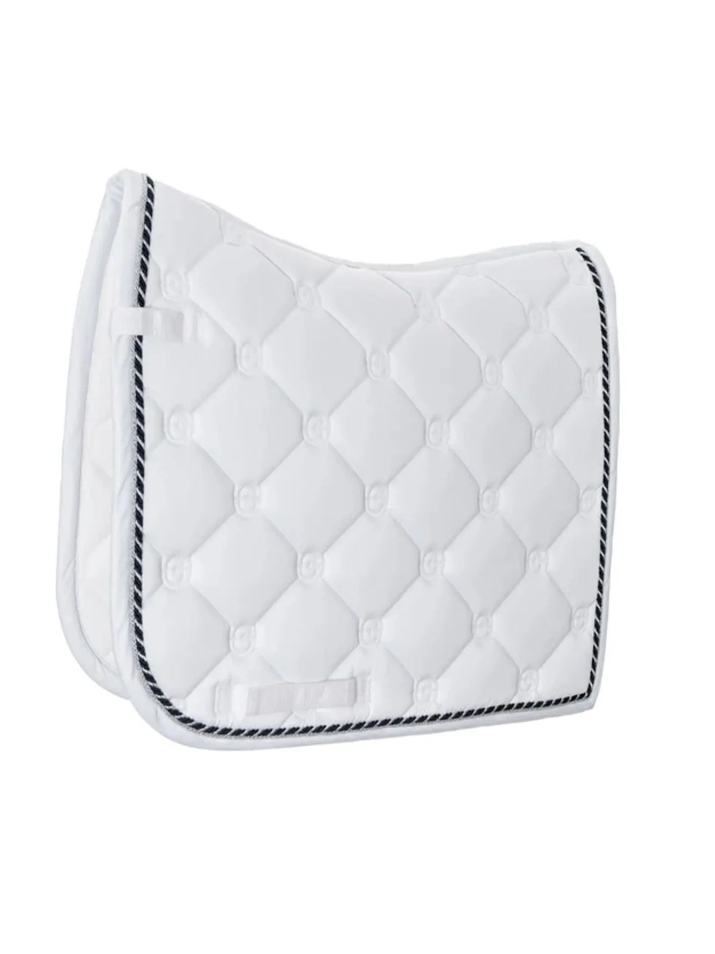 Sei mit dieser White Perfection Schabracke ein wahrer Champion! Unsere hochwertige Dressurschabracke in Shiny White ist ideal für Turniere. Das Material der Schabracke glänzt und ist schmutzabweisend.