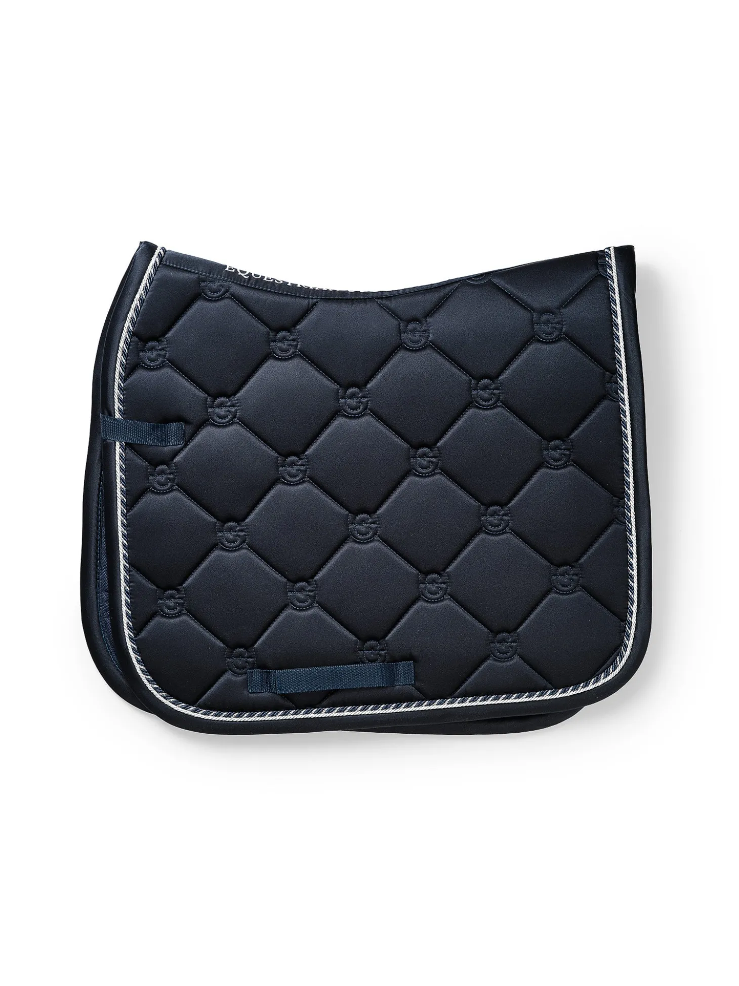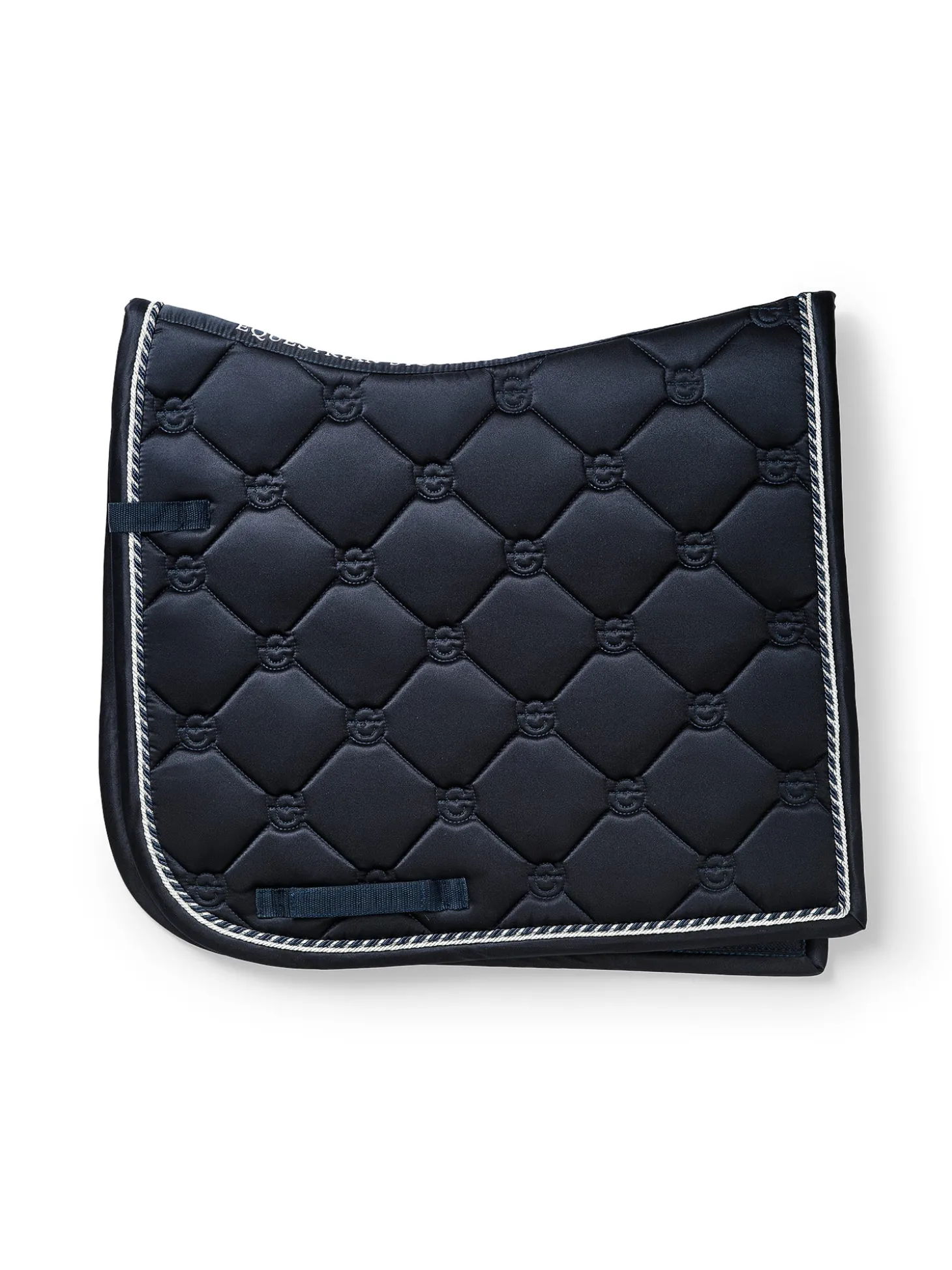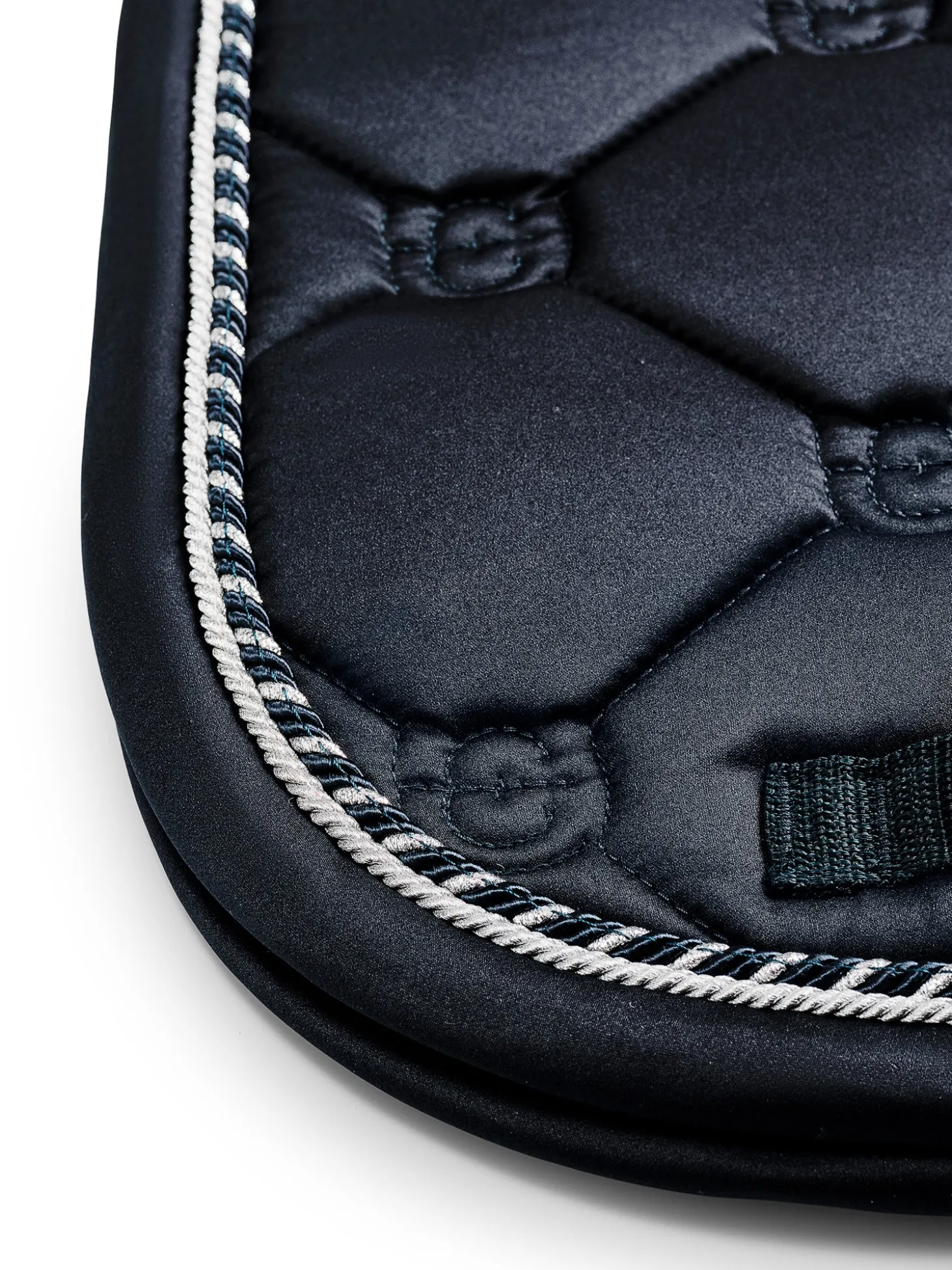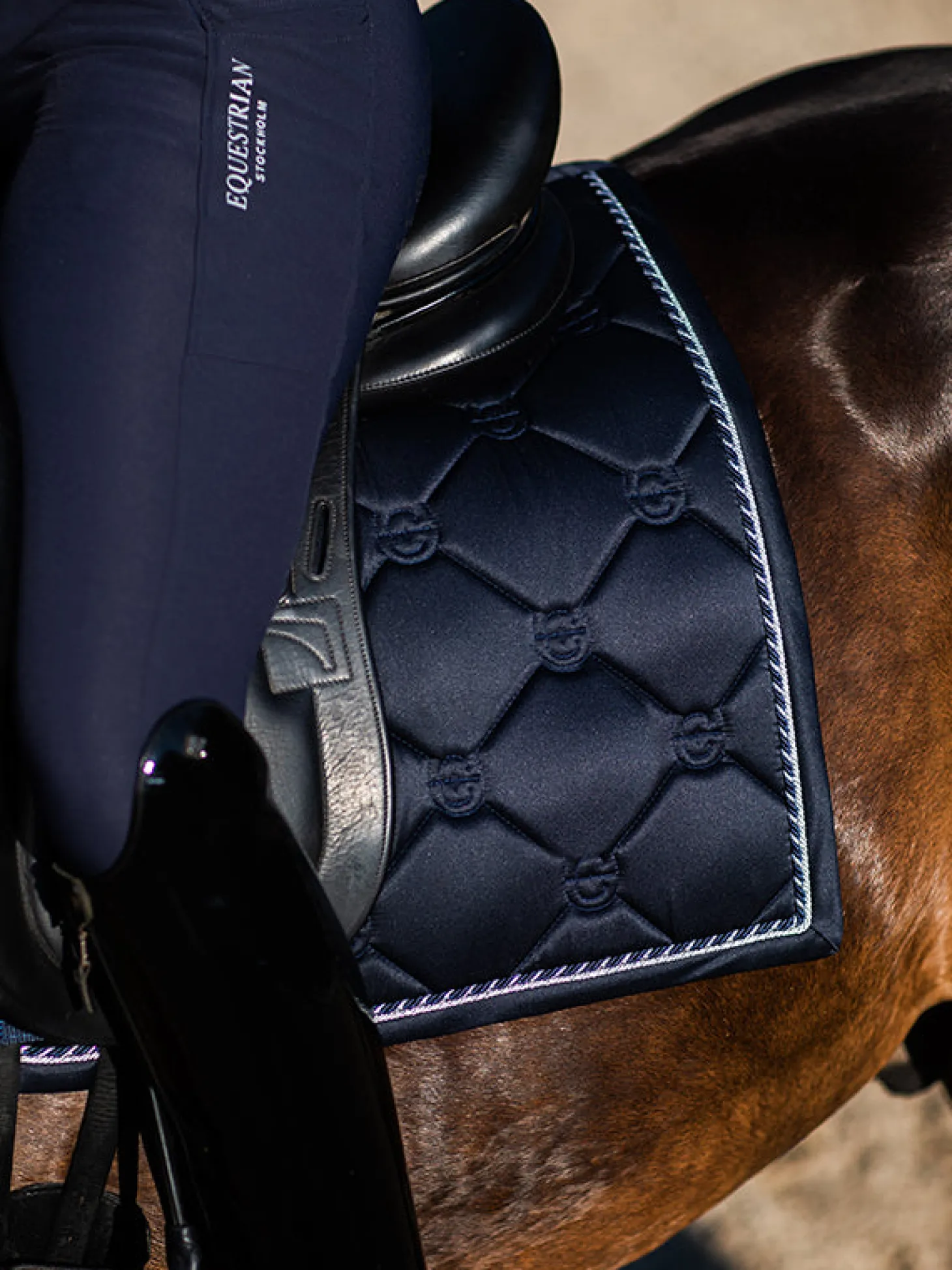 Die hochwertige Dressurschabracke in Shiny Navy ist ideal für das Training. Das Innenmaterial der Schabracke ist besonders schnell trocknend und das Außenmaterial ist glänzend und schmutzabweisend. Mit dieser Schabracke kannst du nichts falsch machen!
