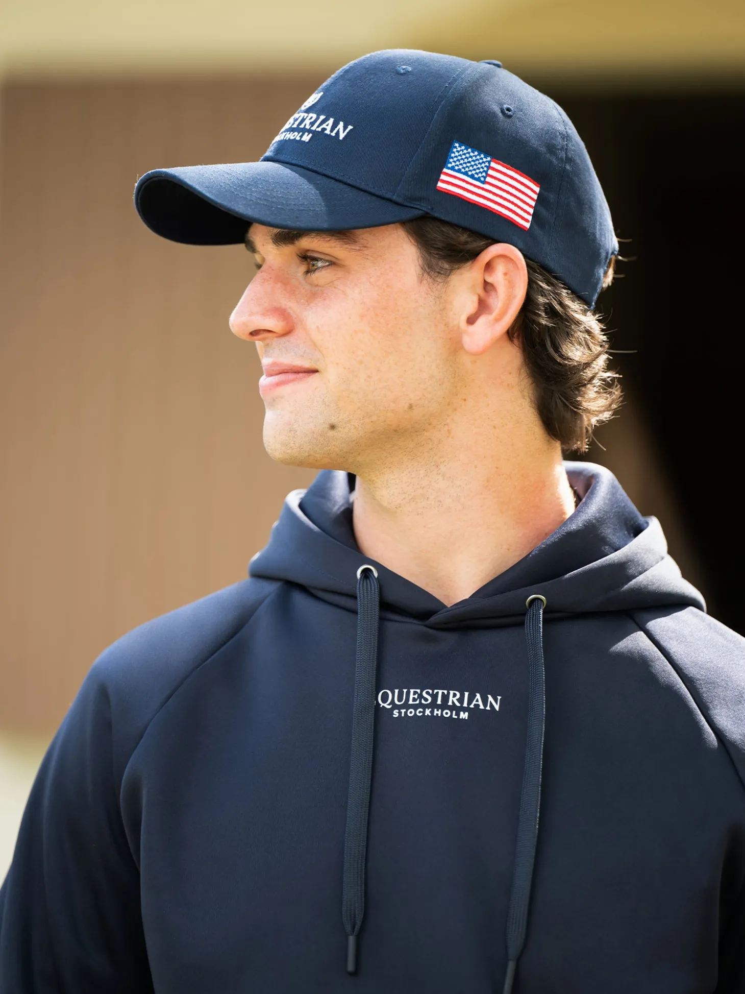 Die Raglanärmel sorgen für eine bequeme Passform und ermöglichen den ganzen Tag über uneingeschränkte Bewegungsfreiheit. Egal, ob Sie sich zu Hause entspannen oder im Stall unterwegs sind, der Ease Hoodie Navy verbindet Komfort und Stil mühelos und ist damit ein Muss für Ihre Garderobe.