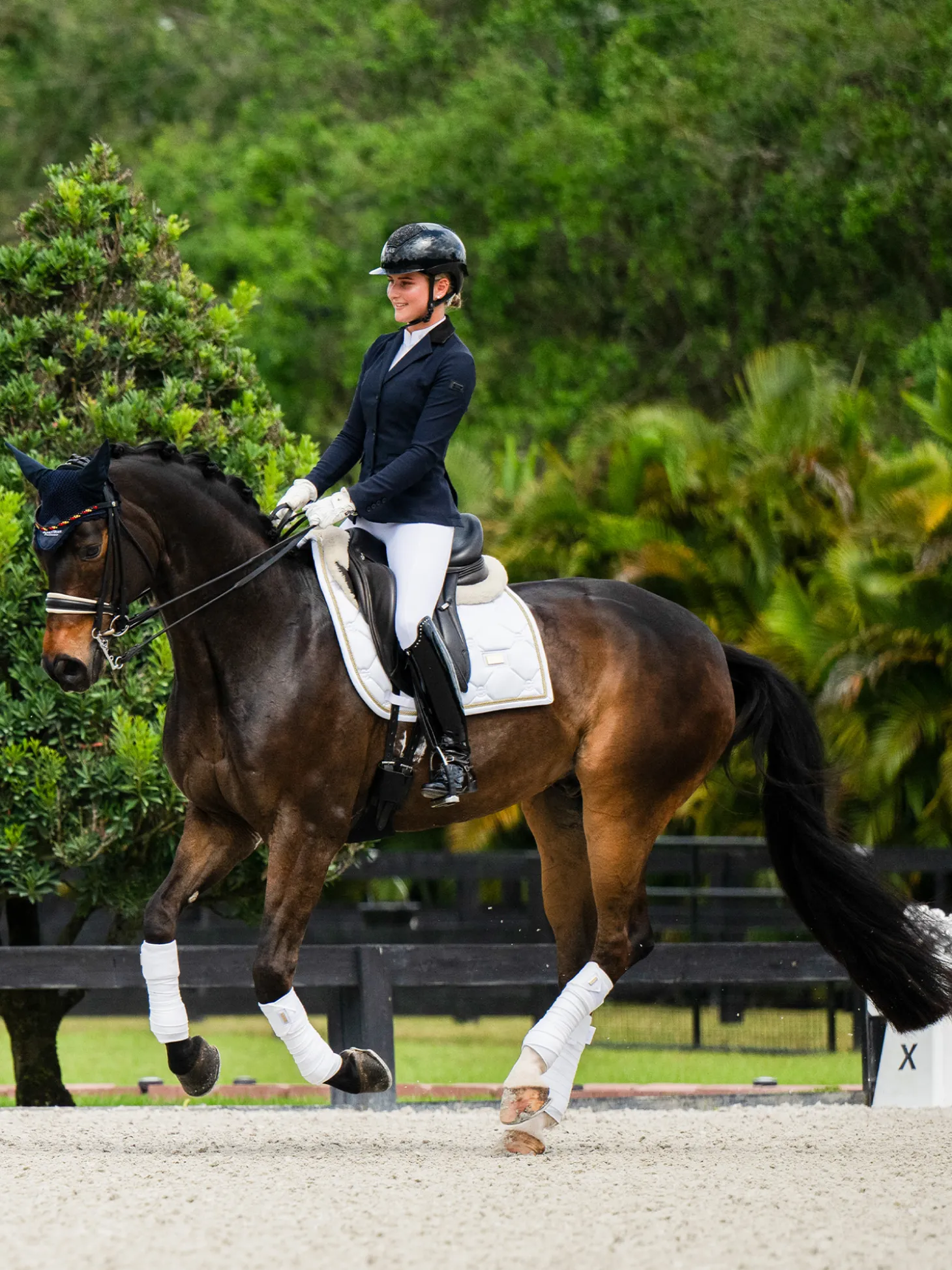 Die hochwertigen, goldfarbenen Details passen perfekt zur Schabracke „White Perfection Gold“.