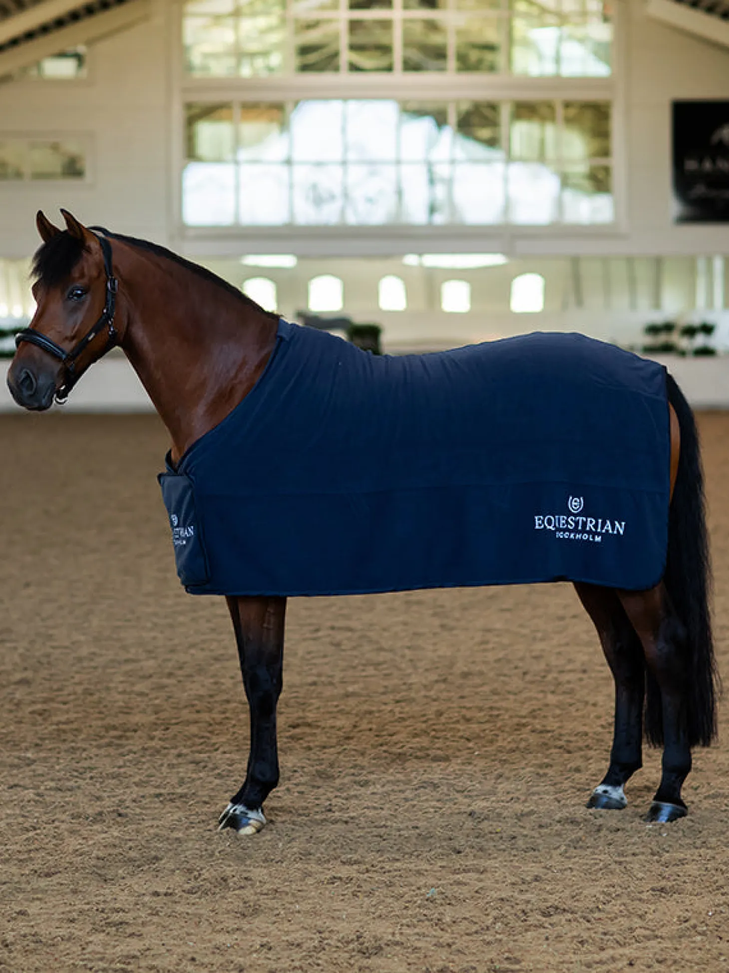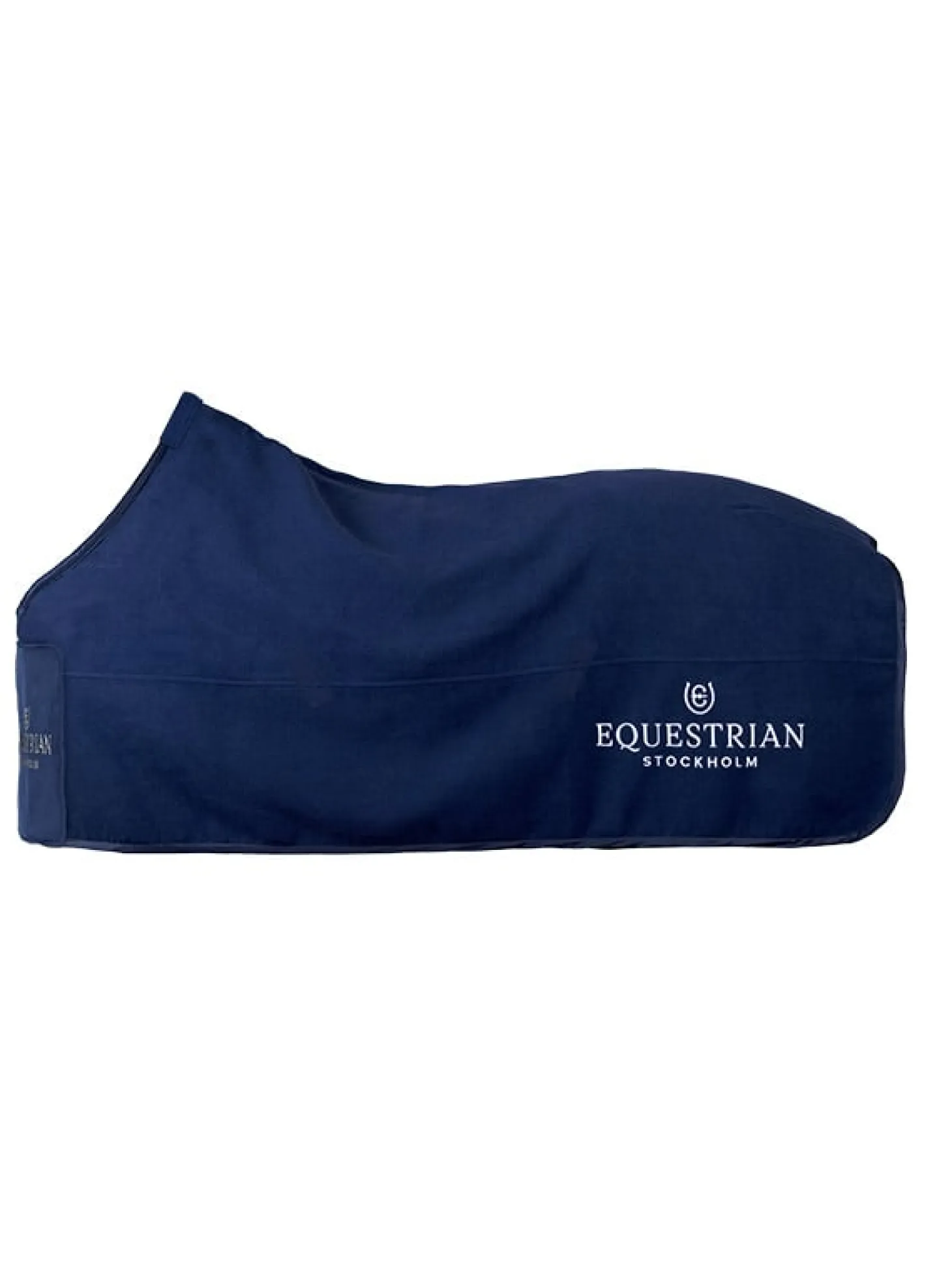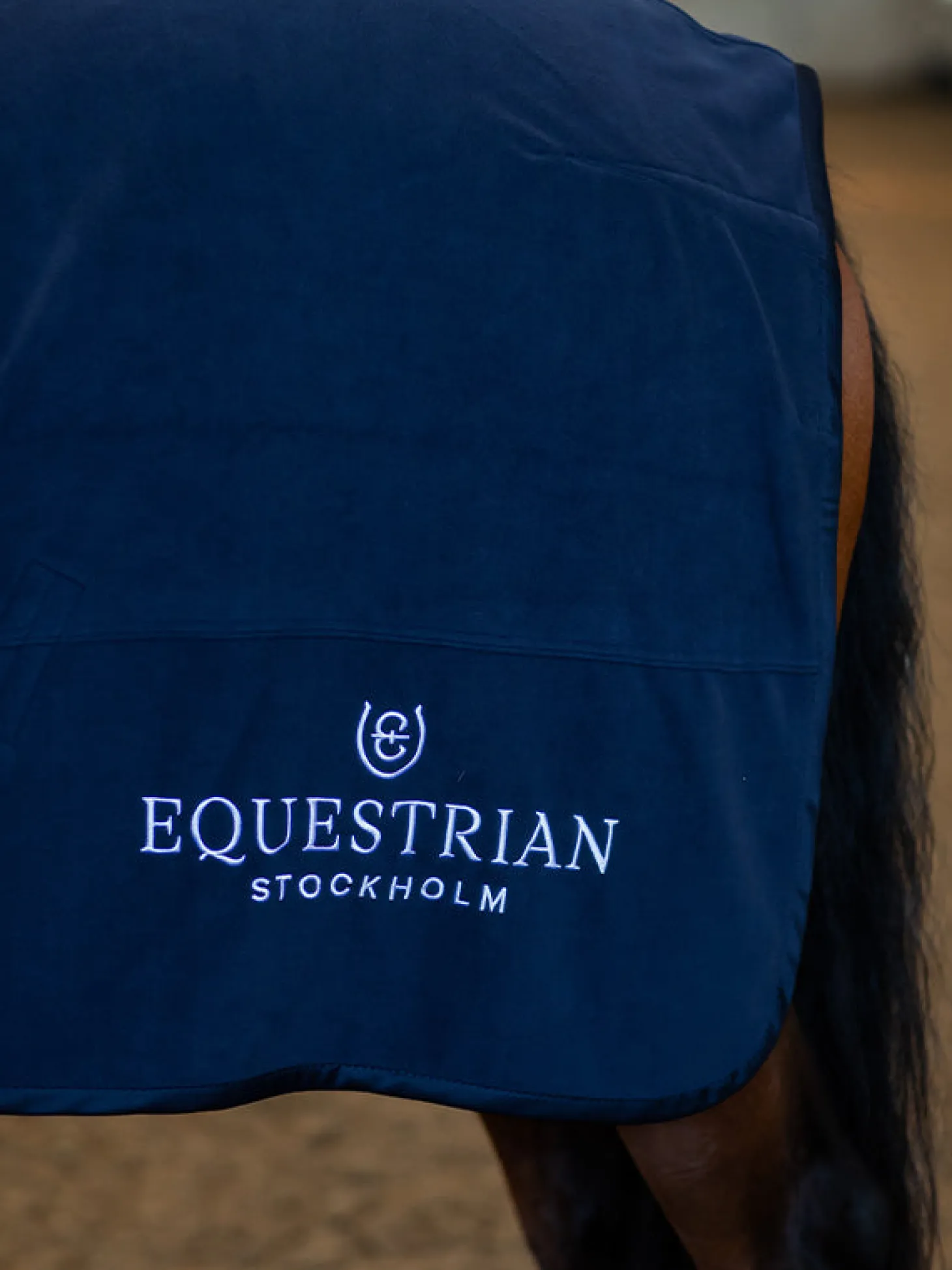 Details: Weißes Equestrian Stockholm Logo auf beiden Seiten / Schwarze Schweifkordel / Randeinfassung in Marineblau / Abnehmbare versteckte Kreuzgurte unter dem Bauch / Abnehmbarer Aufnäher vorne mit weißem Equestrian Stockholm Logo