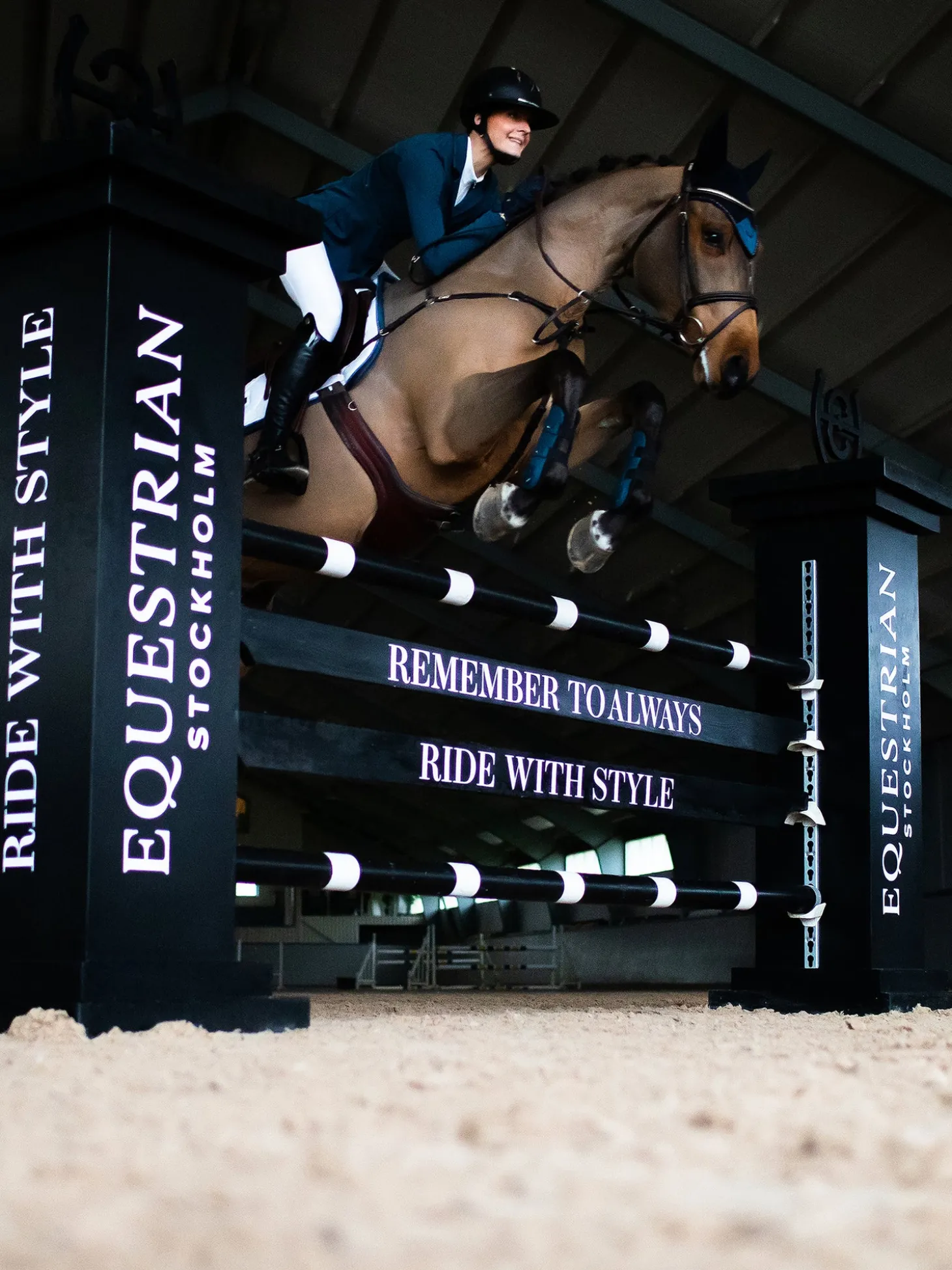Luxuriöse gehäkelte Fliegenhaube in stilvollem Marineblau. Verziert mit einem blauen Satinaufnäher auf der Vorderseite, einer schönen Paspelierung und der Randeinfassung in Marineblau. Gestylt mit Equestrian Stockholm Abzeichen in Dunkelblau. Die Fliegenhaube bietet sowohl Insektenschutz als auch Geräuschdämmung. Sie hat einen elastischen Stoff an den Ohren für zusätzlichen Komfort. Passt perfekt zu der Schabracke aus der Blue Meadow Kollektion.