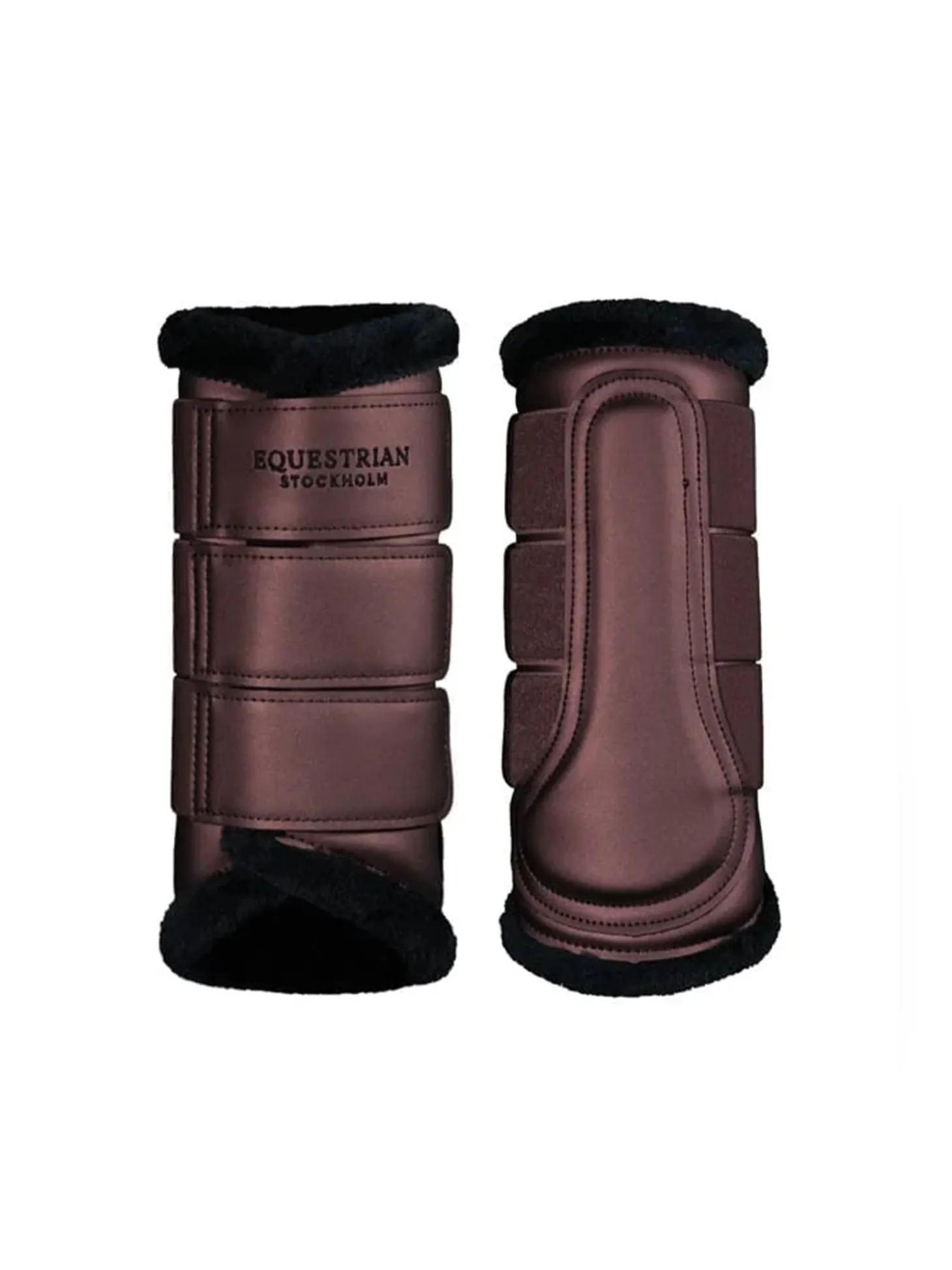 Hochwertige Gamaschen mit Rundum Passform, in Braun mit einem Hauch von Rot gehalten. Hergestellt aus synthetischem PU-Leder mit einer matten Oberfläche. Weicher Teddy auf der Innenseite gegen die Beine des Pferdes. Elastische Klettverschlüsse mit dem stilvollen Equestrian Stockholm Logo verziert. Kombinieren Sie die Gamaschen mit anderen Produkten aus unserer Endless Glow Kollektion für einen kompletten Look. Die Gamaschen werden paarweise verkauft und passen sowohl vorne als auch hinten.
