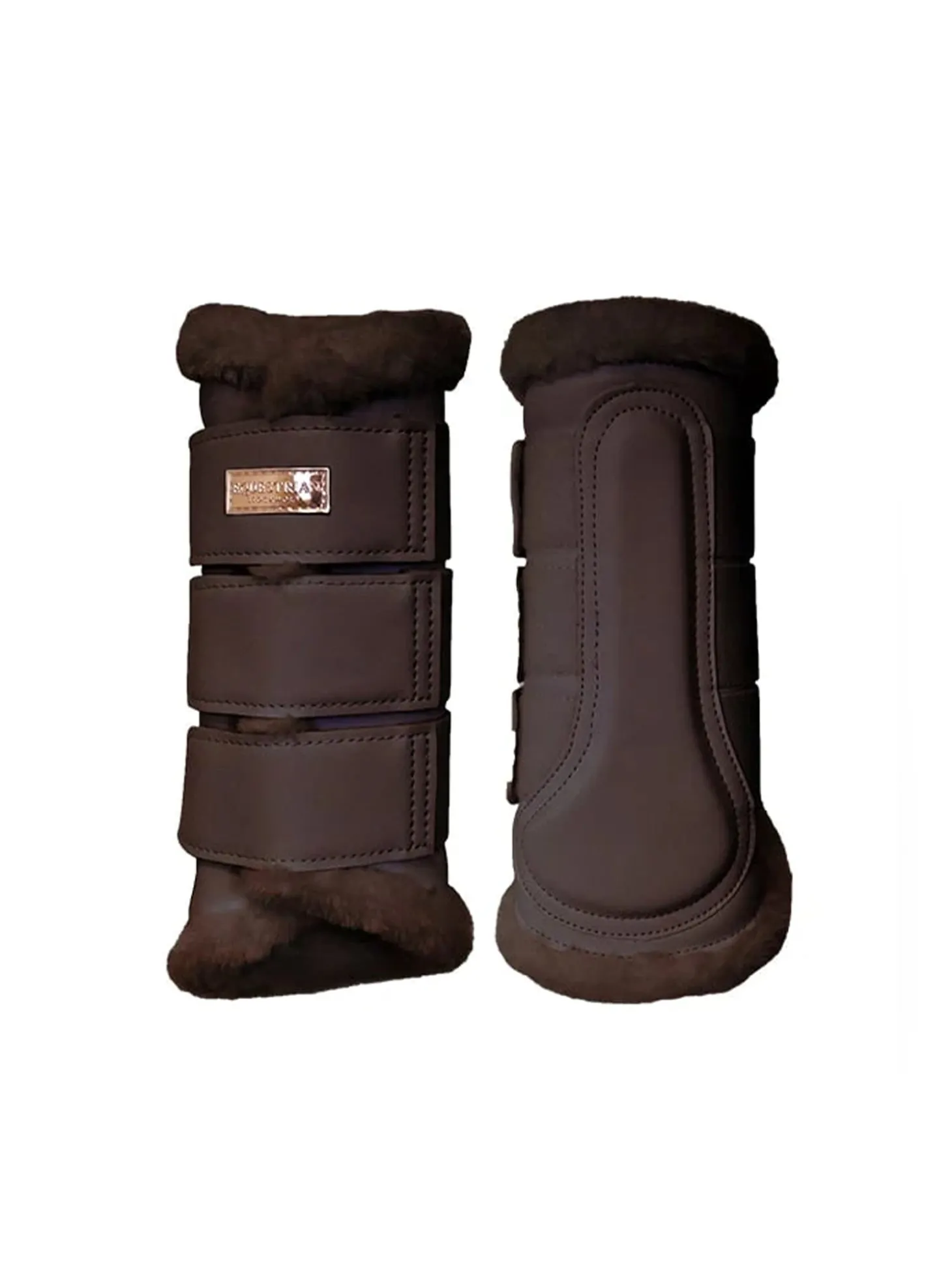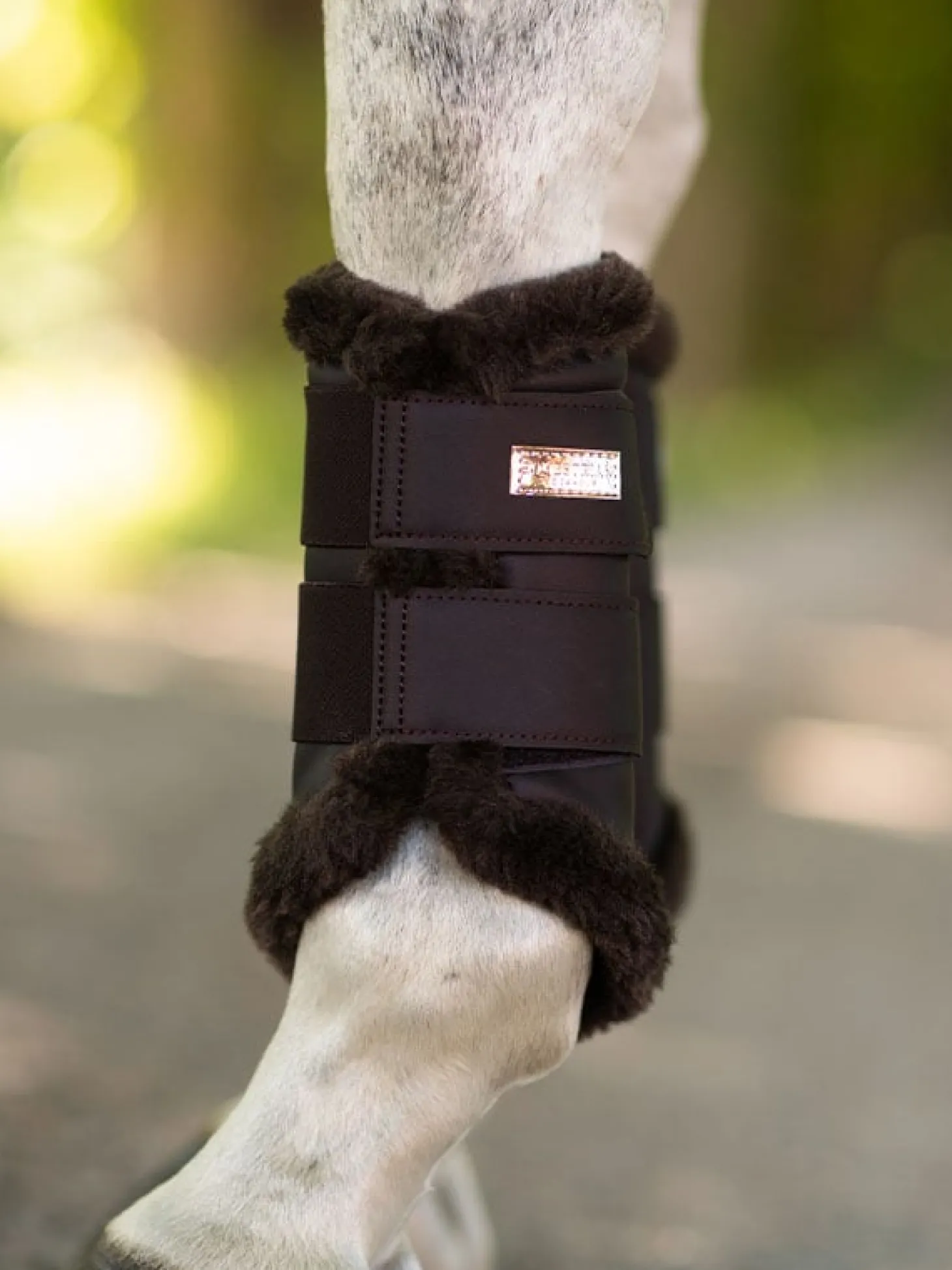 Hochwertige Gamaschen mit Rundum-Passform, in schönem Braun/Lila mit roségoldenen Details. Hergestellt aus synthetischem PU-Leder mit mattem Finish. Weiches Innenfutter für die Beine des Pferdes. Elastische Klettverschlussriemen mit dem stilvollen Equestrian Stockholm-Logo. Kombinieren Sie die Gamaschen mit anderen Produkten aus unserer Moonless Night Kollektion für einen kompletten Look. Die Gamaschen werden paarweise verkauft und passen sowohl vorne als auch hinten.