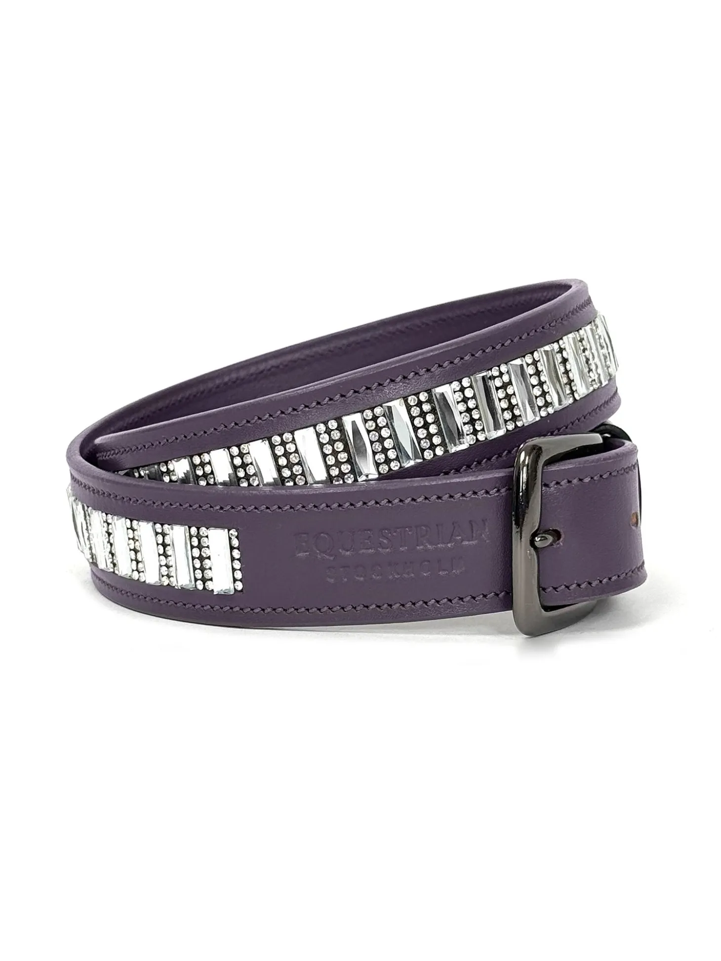 Ein Gürtel, der Sie strahlen lässt wie einen Gewinner! Hergestellt aus 100 % hochwertigem Büffelleder und gefärbt in einem nachhaltigen Verfahren mit Obst und Gemüse, bei dem keine Chemikalien zum Einsatz kommen. Wunderschönes dunkles Violett mit eingraviertem ES-Logo, klaren Kristallen und einer silbernen Schnalle. Der Gürtel ist 3 cm breit.