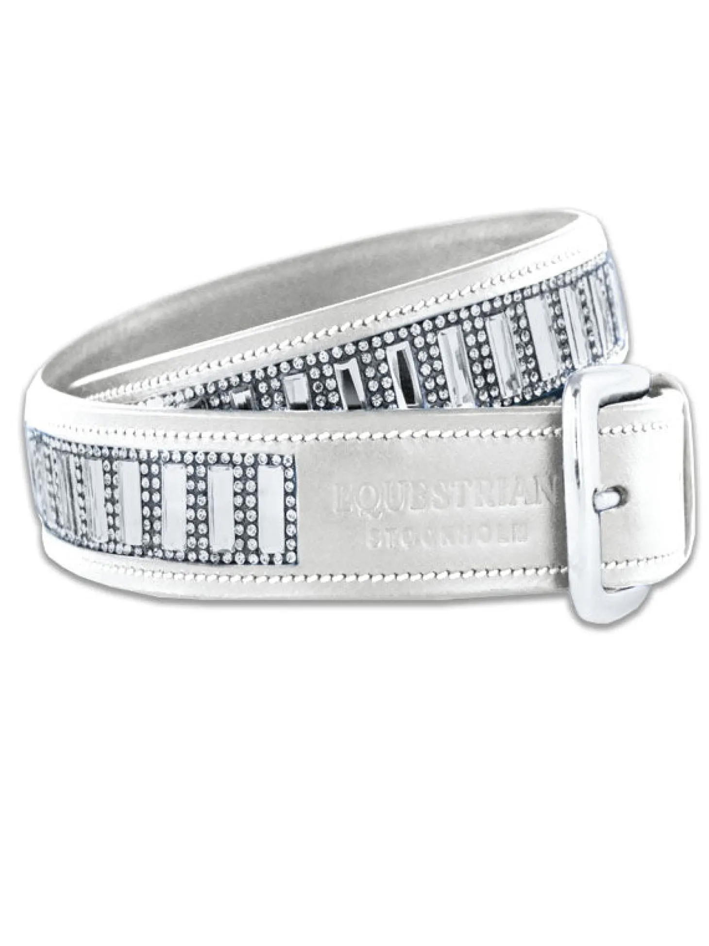 Ein Gürtel, der Sie wie ein Sieger strahlen lässt! Aus 100% hochwertigem Büffelleder gefertigt. Wir verwenden einen nachhaltigen Färbeprozess mit Obst und Gemüse, bei dem keine Chemikalien verwendet werden. Schönes weißes Leder mit eingraviertem ES Logo, klaren Kristallen und einer silbernen Schnalle. Der Gürtel ist 3 cm breit.