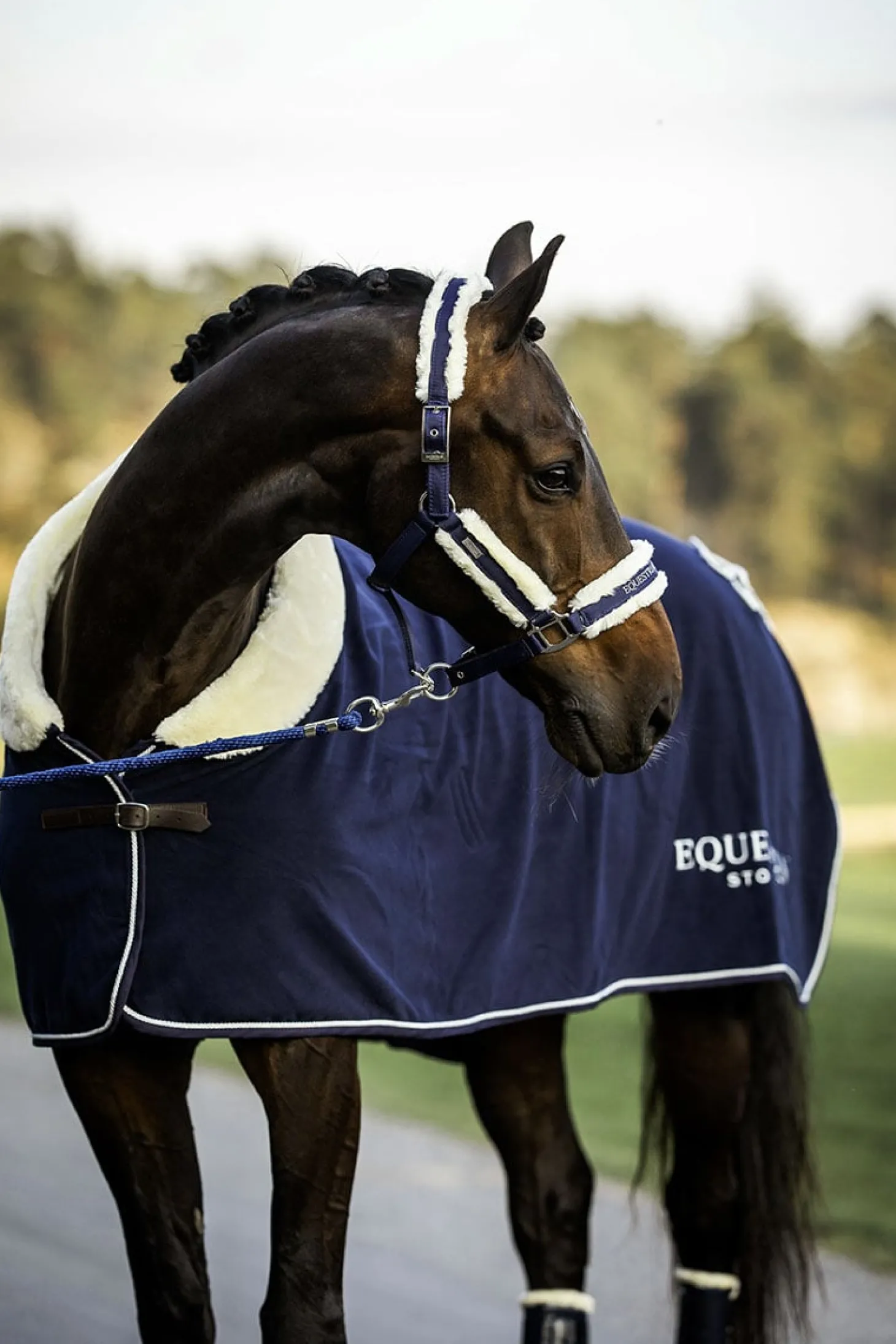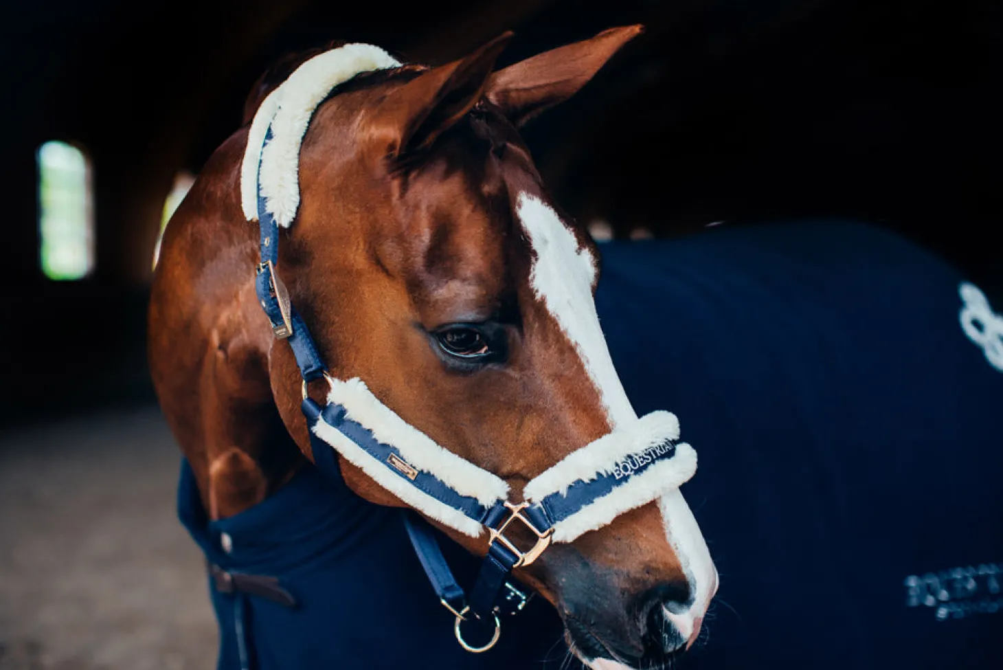 Exklusives Halfter aus Nylon mit fell Details blau Farbe, perfekt passend zu unserer navy Serie.