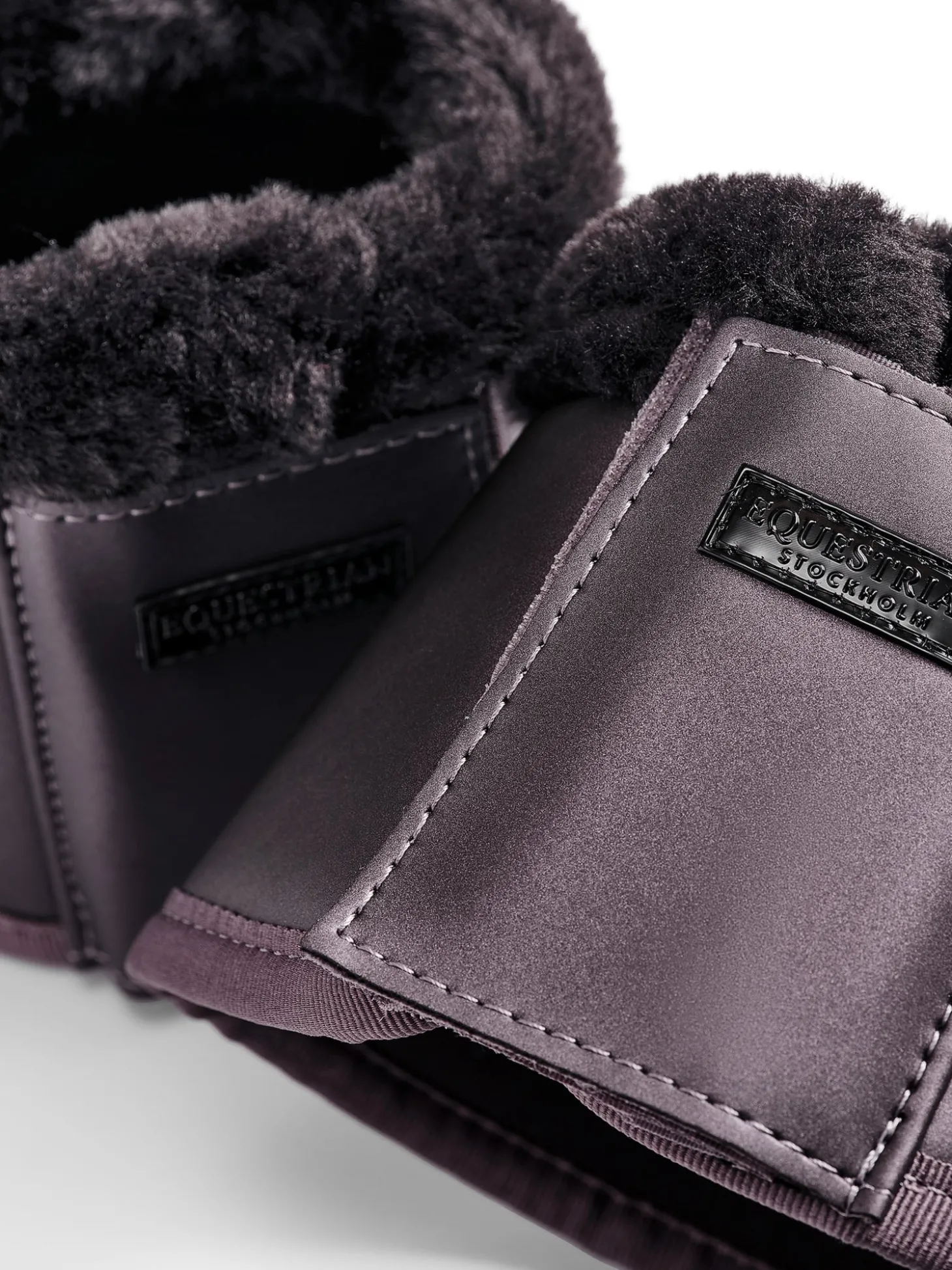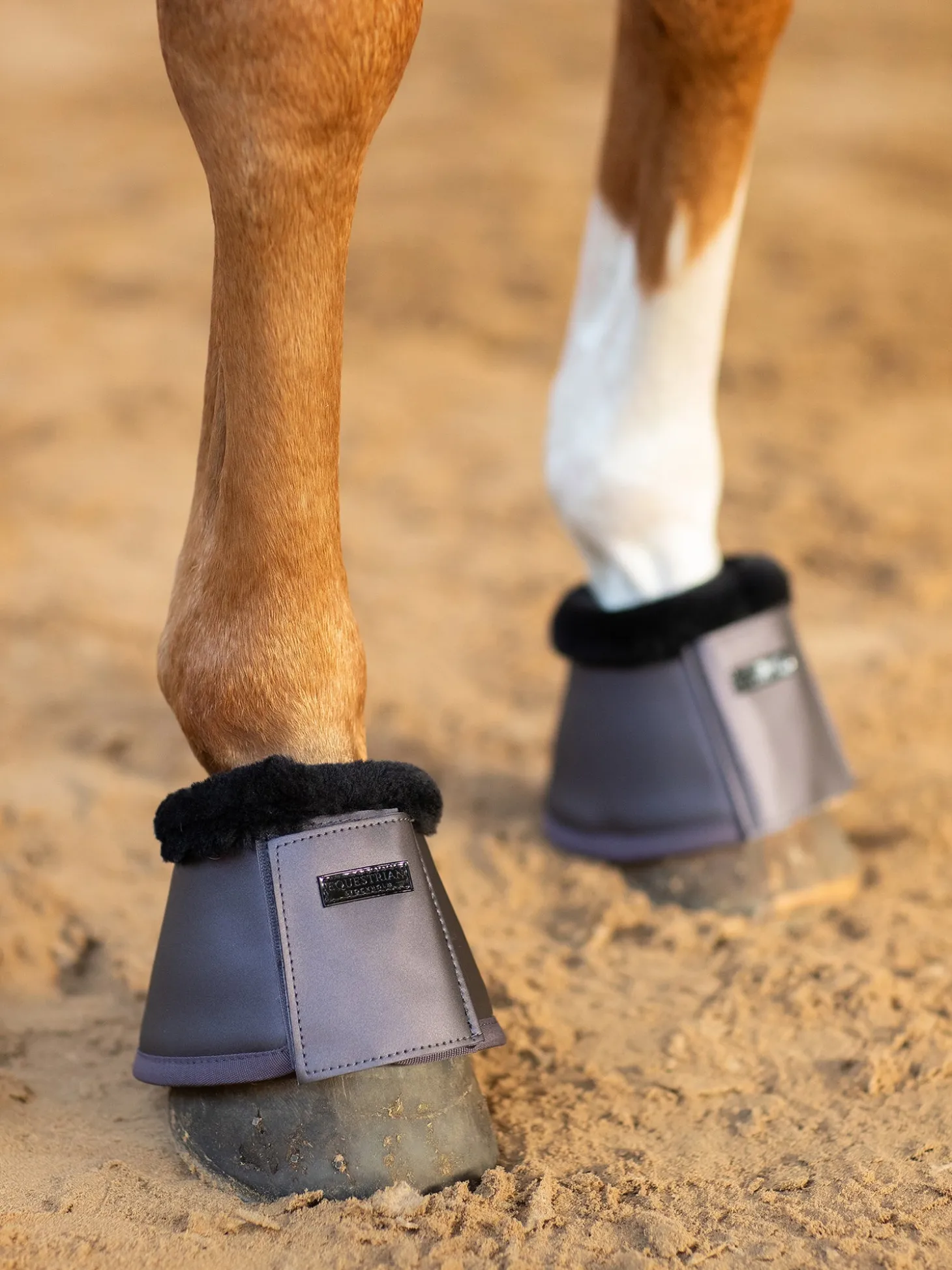 Verbessern Sie Ihren Stil mit diesen hochwertigen Hufglocken aus Kunstleder mit mattem Finish. Entworfen in elegantem, dunklem Violett. Superweiches Teddyfleece Kunstfell auf der Innenseite, das das Bein des Pferdes umschließt.