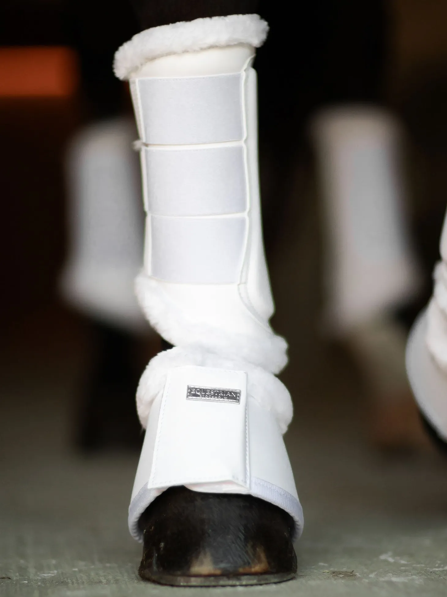 Verbessern Sie Ihren Stil mit diesen hochwertigen Hufglocken aus glänzendem Kunstleder. Entworfen in einem sauberen Weißton mit weißem Teddyfutter. Superweiches Teddyfutter auf der Innenseite am Pferdebein.