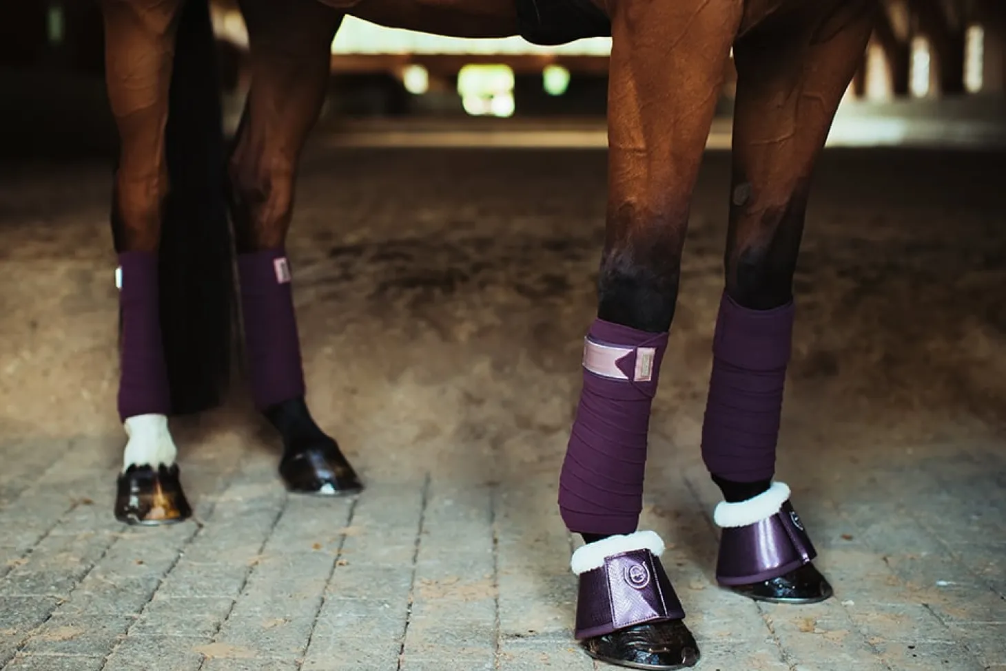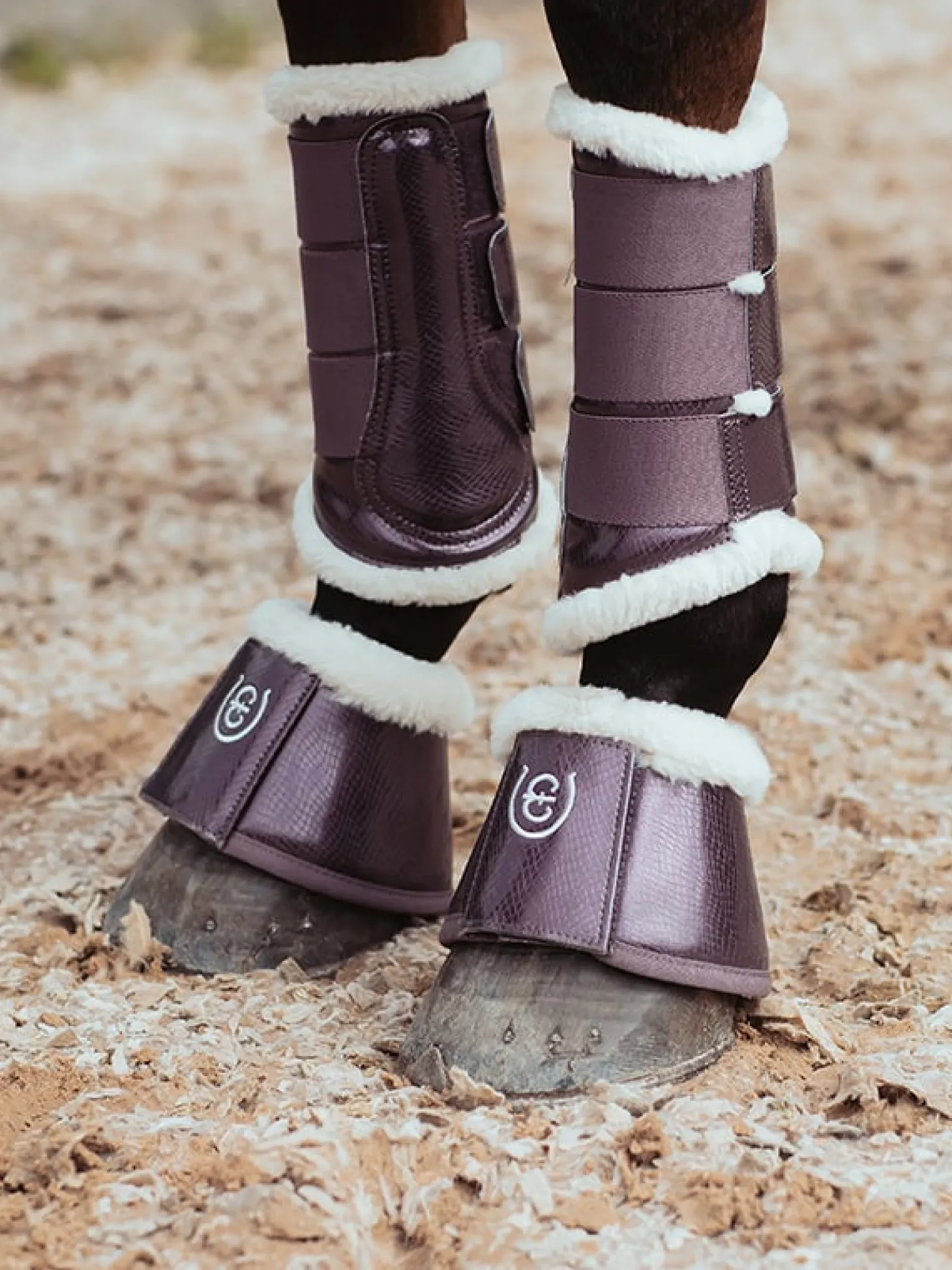Bessern Sie Ihren Stil mit diesen hochwertigen Hufglocken aus glänzendem Kunstleder mit Kroko-Imitat auf. Entworfen wurden diese in einem schönen lila mit kalten beige Teddyfell. Die Hufglocken sind ca. 6 mm dick und innen mit schwarzen Neopren gefüttert, was effektiv Verletzungen des Fersenbuckels verhindert. Die Hufglocken werden mit einem breiten Klettverschluss geschlossen, der mit einem weißen Equestrian Stockholm-Logo verziert ist. Kombinieren Sie ihn mit den Gamaschen aus der gleichen Kollektion für den kompletten Beinelook.