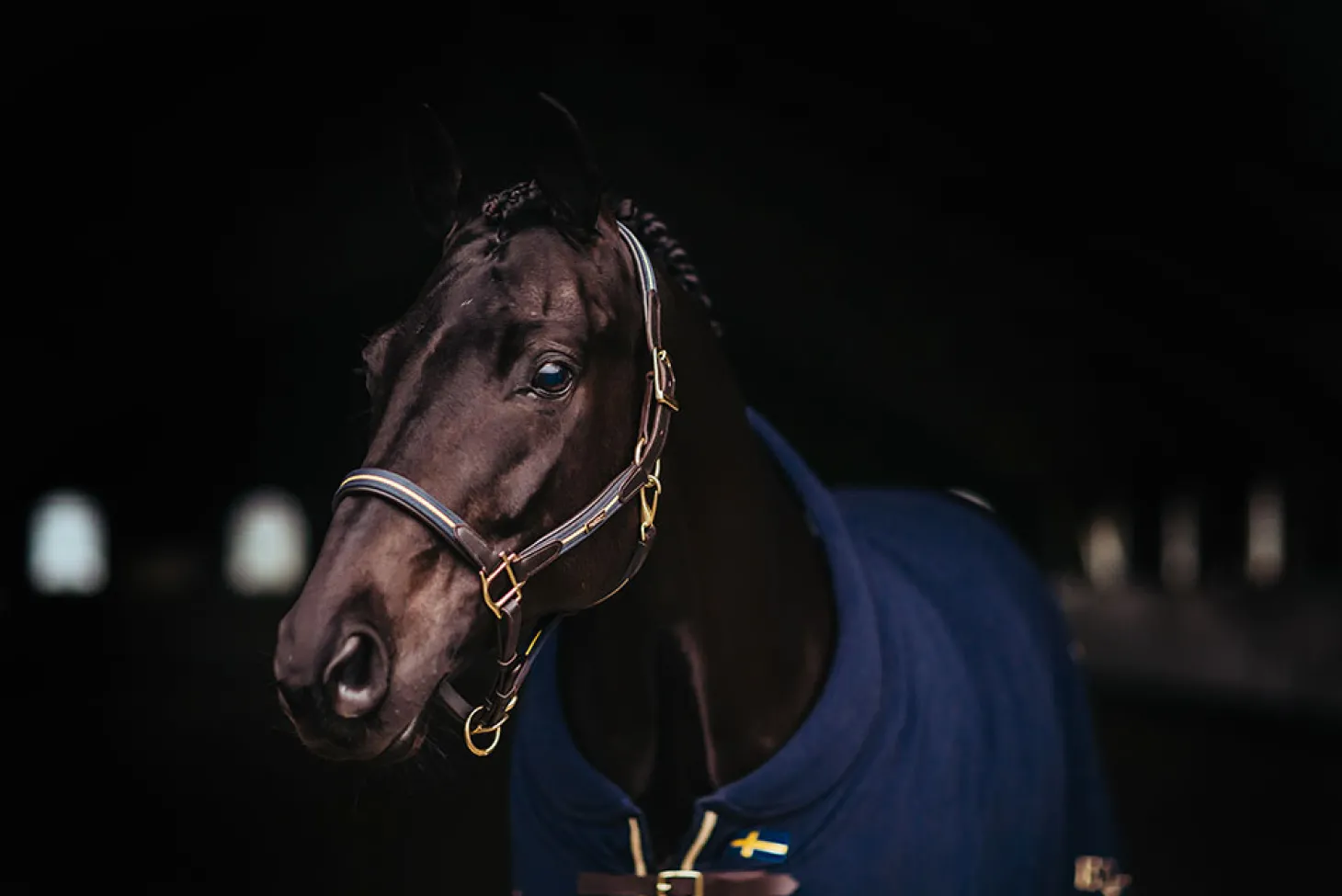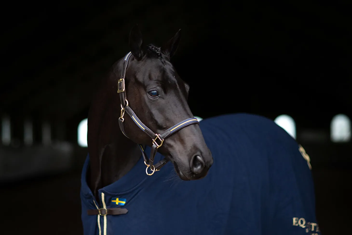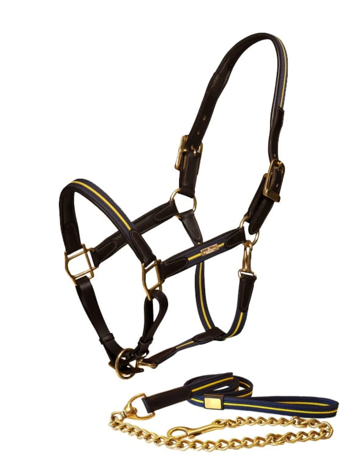 Wunderschöne Halfter im Leder, mit Details in Schweden Farben aus Nylon. Passend zu der Rest vom Kollektion.