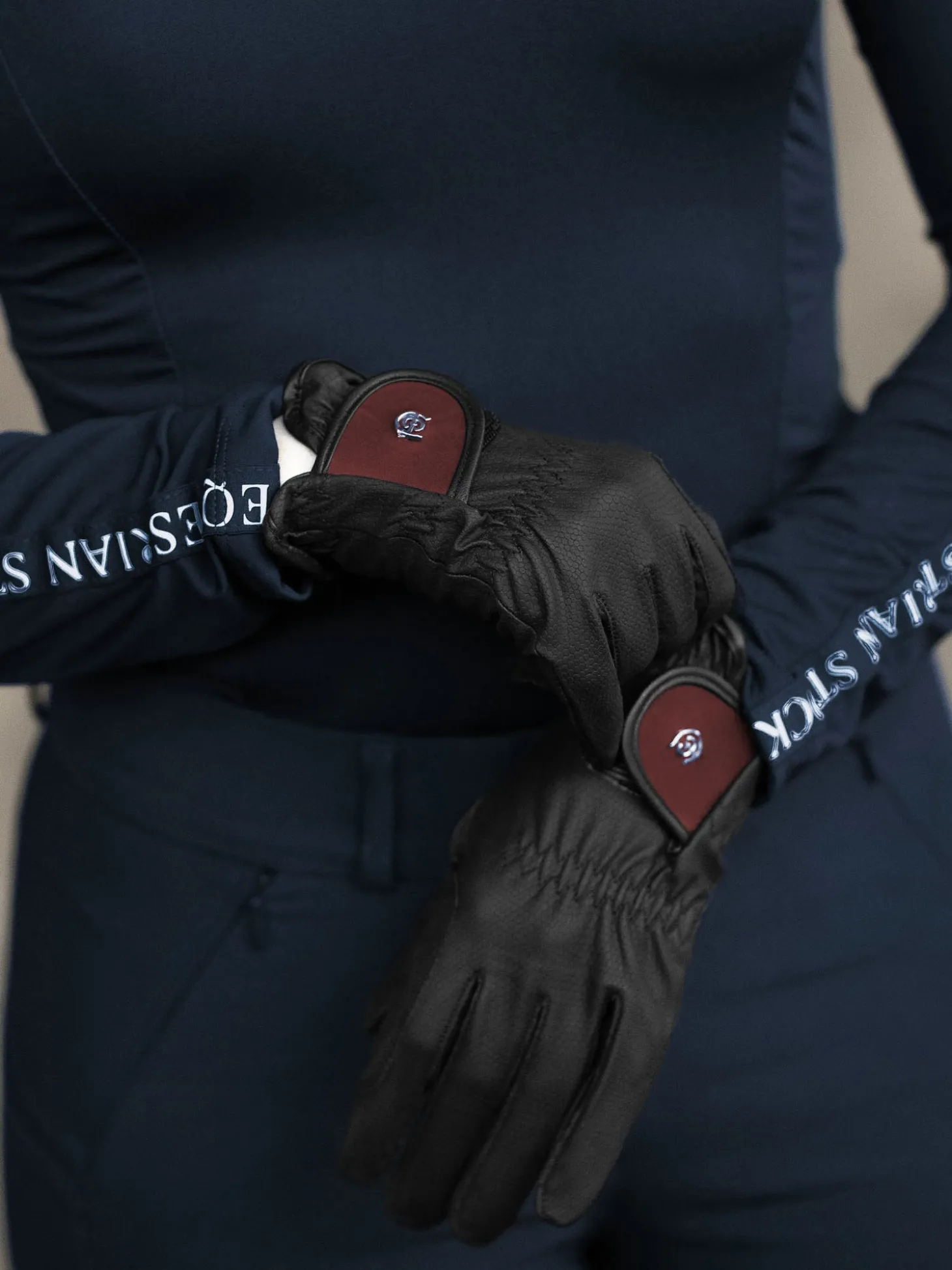 Verziert mit weichem rougefarbenem Satin und einem kleinen Equestrian Stockholm Abzeichen in Silber.