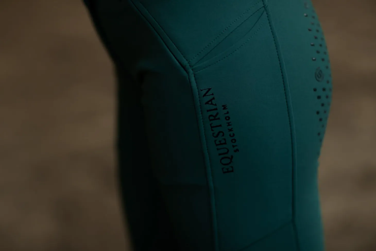 Details: Schwarzes Equestrian Stockholm Logo auf der linken Tasche / Schwarzes Equestrian Stockholm Logo auf beiden Waden