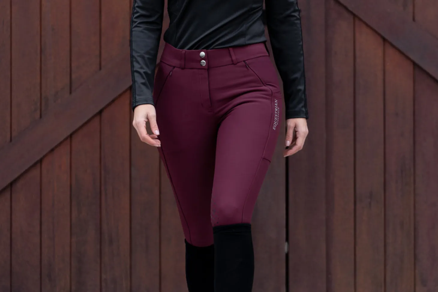 Unsere brandneue Reithose kommt in 4-Wege-Stretch-Material und einer größeren Größenauswahl. Exklusive Reithosen in schönem Dunkelrot mit dem Logo von Equestrian Stockholm. Mit vollem Grip, bequemen Handytaschen und superweichem Stoff wird diese Reithose Ihr Go-To-Stück sein. Voller Silikongrip am Sitz, damit Sie sicher im Sattel sitzen