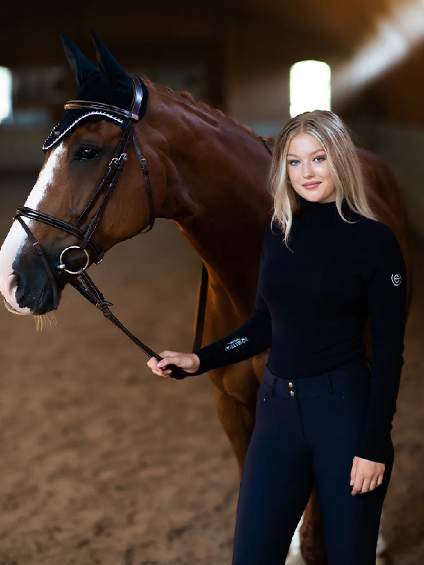Es hat eine eng anliegende Passform und ist mit zwei Equestrian Stockholm Logos verziert. Tragen Sie das Top mit anderen Produkten aus unserer Royal Classic Kollektion für einen kompletten Look. Wenn Sie zwischen zwei Größen liegen, raten wir Ihnen, eine Nummer kleiner zu wählen.