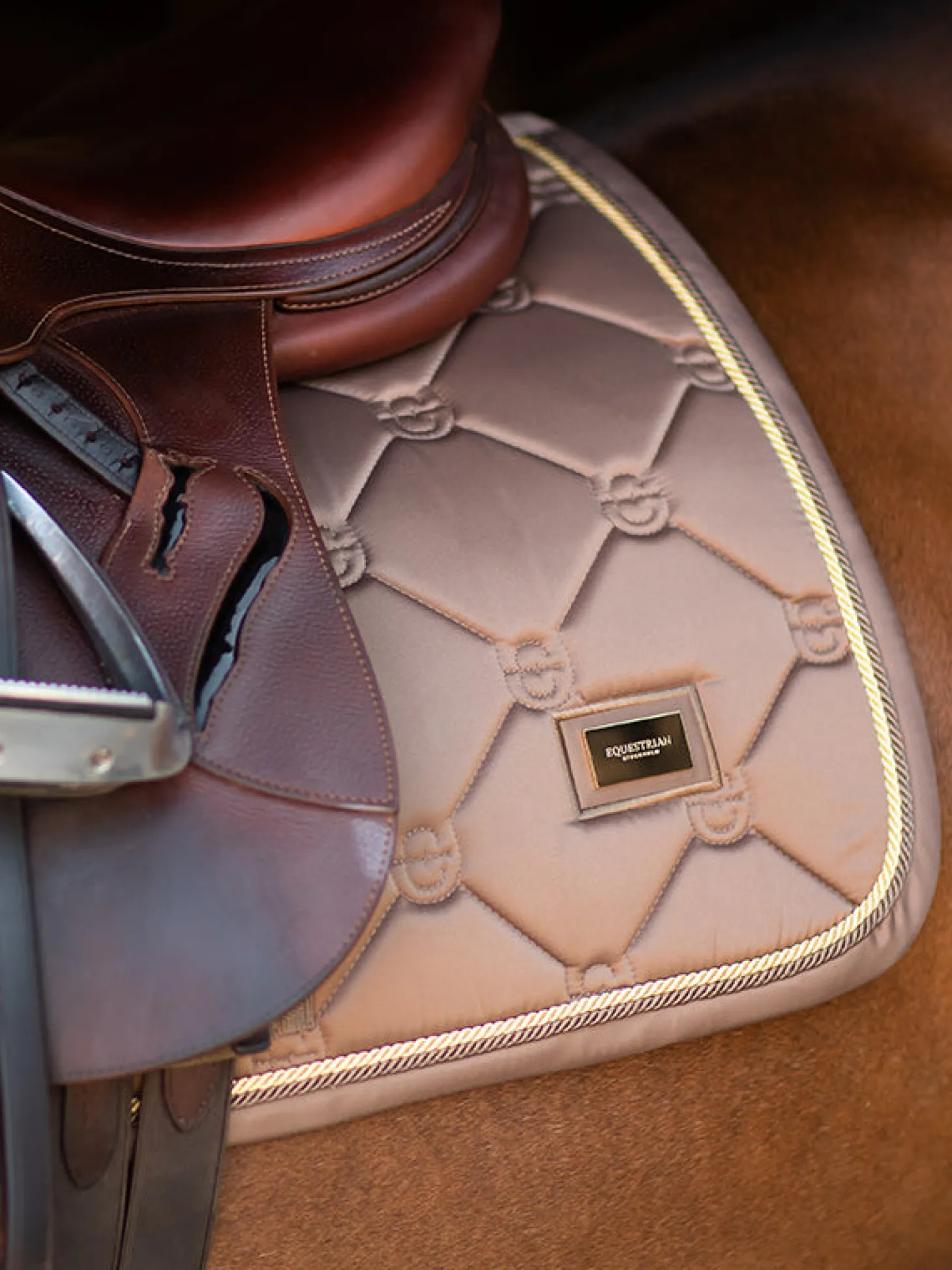 Die hochwertige Schabracke für Springsättel in Shiny Champagne ist ideal fürs Training oder für Turniere.
