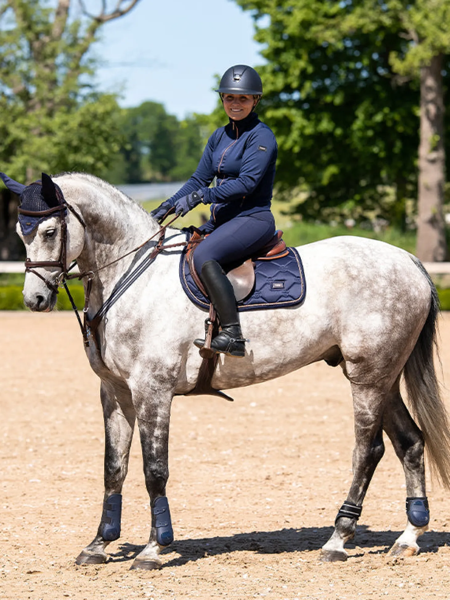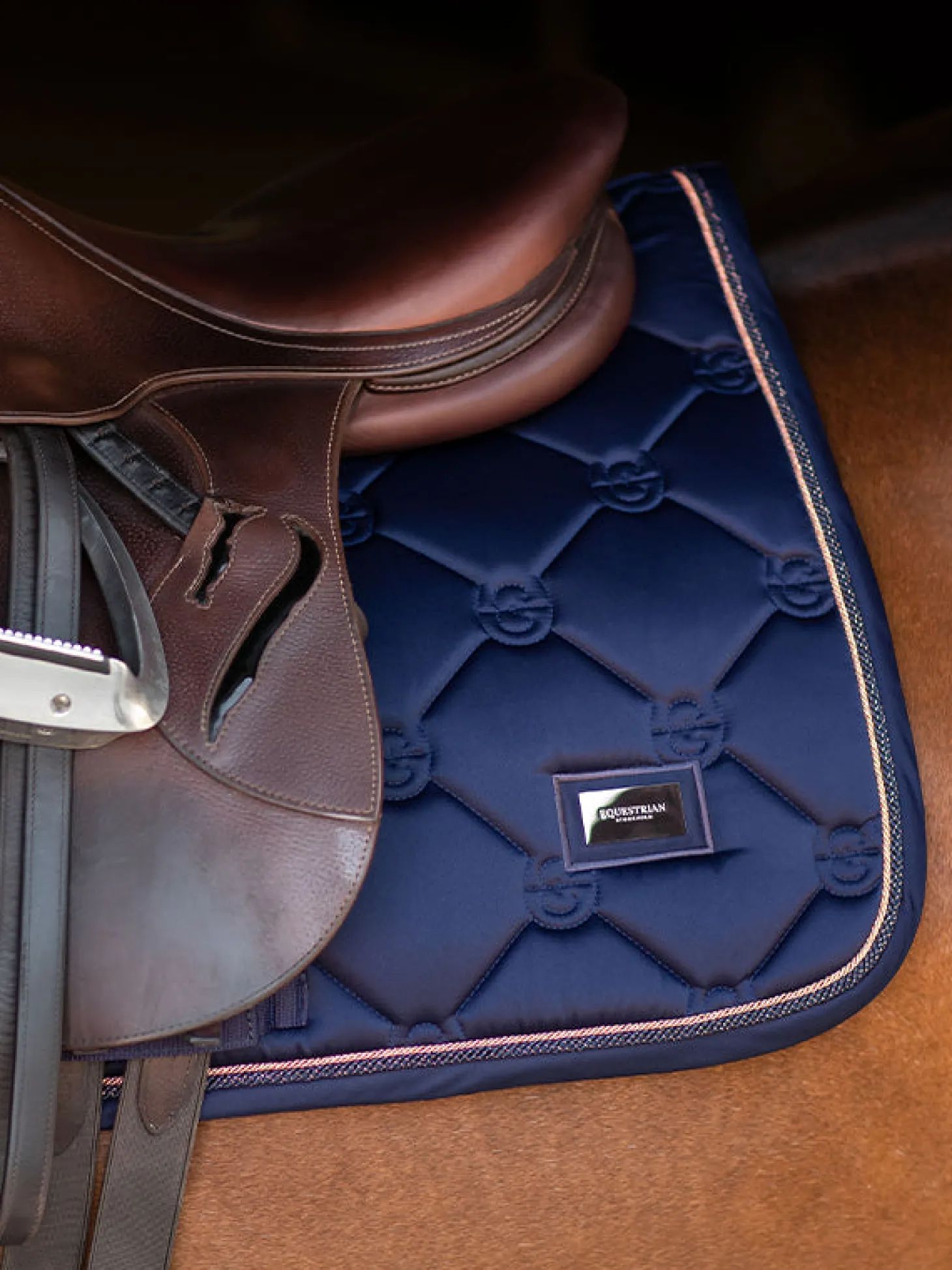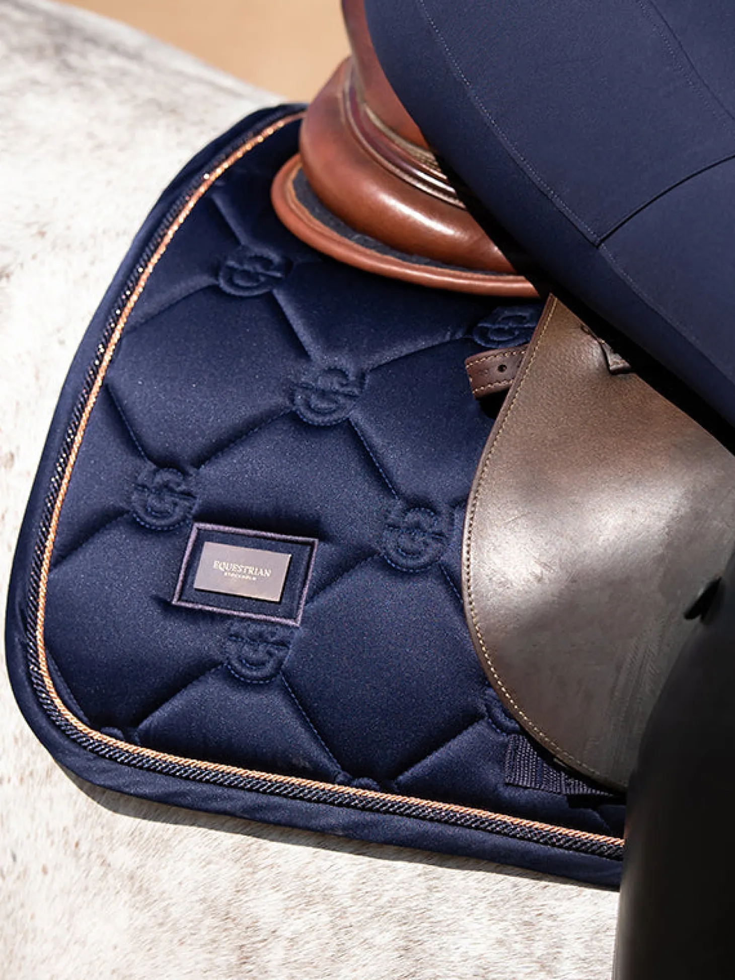 Elegante Schabracke in Blau mit roségoldenen Details. Verziert mit dem Equestrian Stockholm Abzeichen in Roségold. Das Material ist mit High IQ cool Komfort behandelt, wodurch die Schabracke schnell trocknet und feuchtigkeitsableitend ist. Das hilft Ihrem Pferd, länger trocken und frisch zu bleiben. Kombinieren Sie die Schabracke mit anderen Teilen aus unserer Lagoon Blush Kollektion für einen stilvollen Look von Kopf bis Fuß.