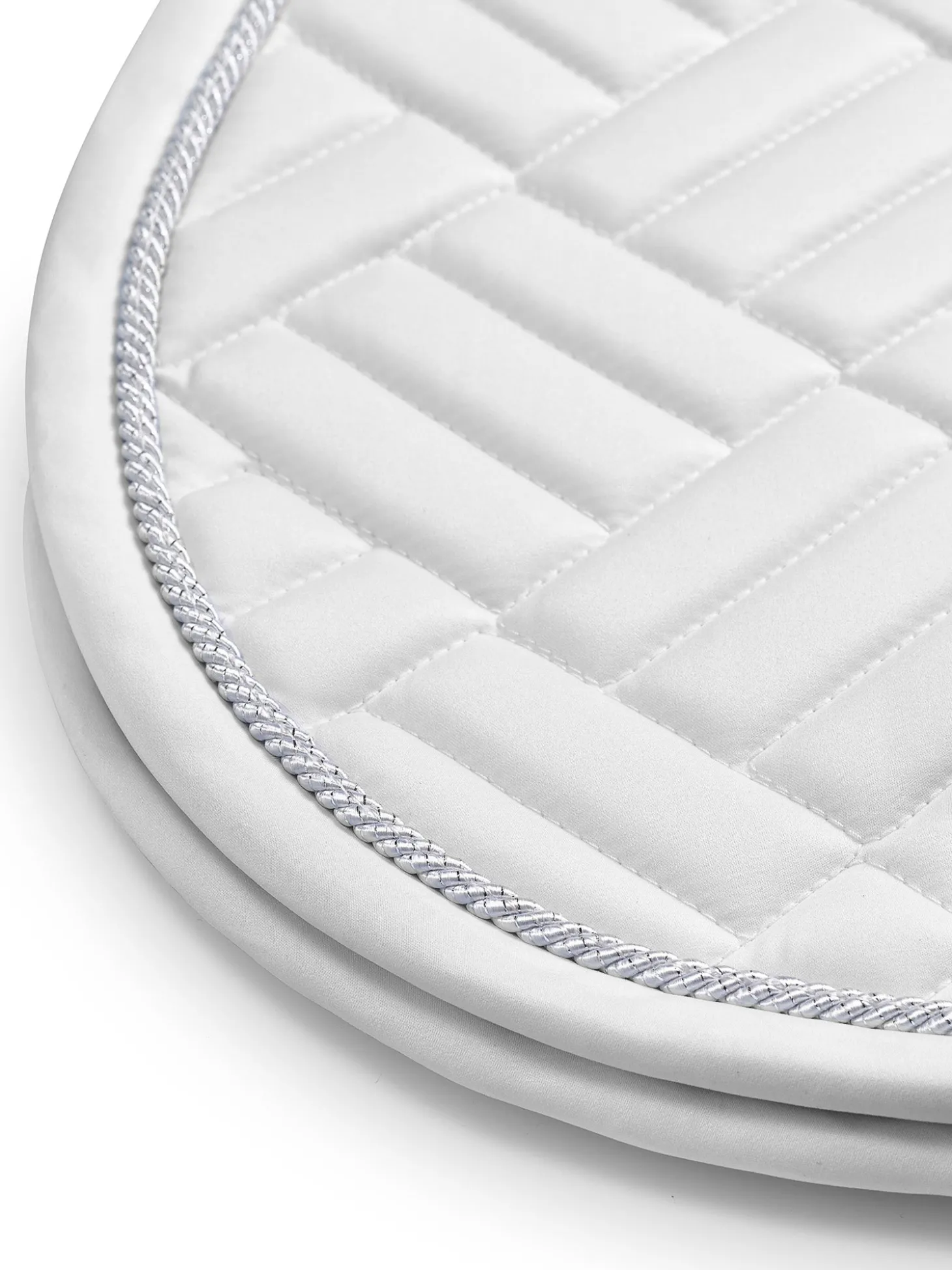 Elegante Schabracke mit moderner Steppung in Weiß mit silbernen Details. Verziert mit dem Equestrian Stockholm Abzeichen in Silber. Das Bambusmaterial ist aufgrund seiner thermoregulierenden Wirkung das ganze Jahr über perfekt – kühlend im Sommer und wärmend im Winter. Außerdem ist es schnelltrocknend, feuchtigkeitsableitend und antibakteriell. Kombinieren Sie die Schabracke mit anderen Teilen aus der Modern Breeze Kollektion für einen stilvollen Look von Kopf bis Fuß.