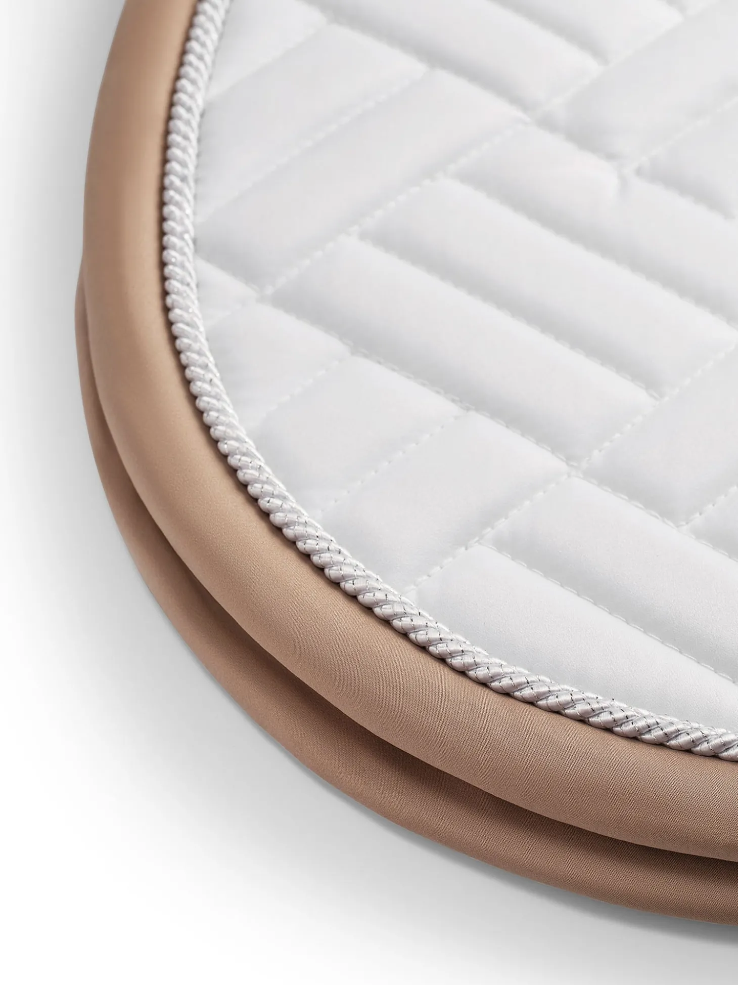 Elegante Schabracke mit moderner Steppung in Weiß mit silbernen und beigen Details. Verziert mit dem Equestrian Stockholm-Emblem in Silber. Das Bambusmaterial ist aufgrund seiner thermoregulierenden Wirkung das ganze Jahr über perfekt geeignet – es kühlt im Sommer und wärmt im Winter. Außerdem ist es schnell trocknend, Feuchtigkeit ableitend und antibakteriell. Kombinieren Sie die Schabracke mit anderen Artikeln aus der Sand Kollektion für einen stilvollen Look von Kopf bis Fuß.