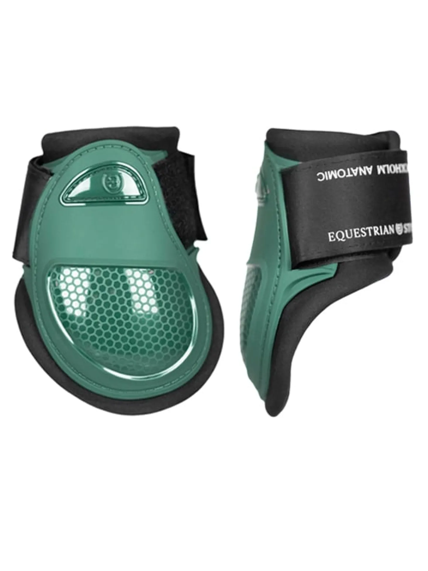 Unsere Anatomischen Fetlock Boots (FEI geprüft) wurden entwickelt, um Pferde beim Springen zu schützen. Sie schützen das Fesselgelenk vor dem Aufprall der Hinterbeine und bieten gleichzeitig Halt. Entworfen in coolem Dunkelgrün. Hergestellt aus einer strapazierfähigen und wasserabweisenden Schale aus thermoplastischem Polyurethan (TPU) in Kombination mit einem atmungsaktiven Neoprenschaumfutter, das die Sehnen vor Überhitzung schützt.