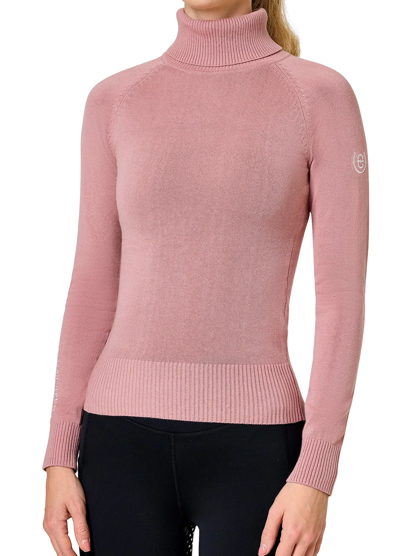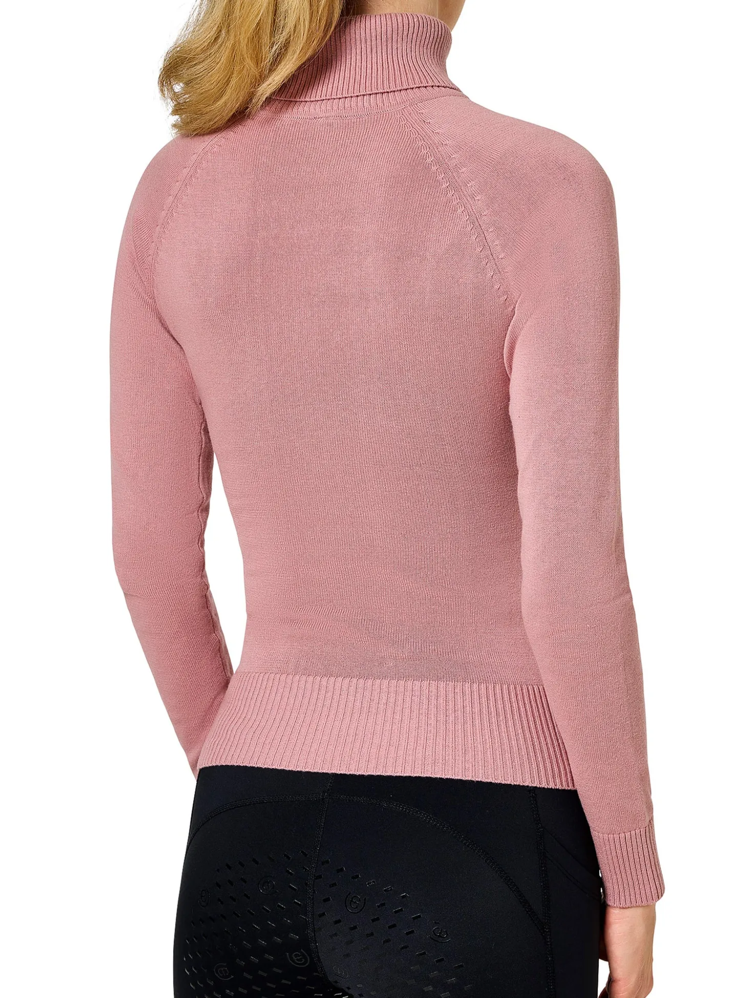 Stylisches Strick-Poloshirt in Rosa mit weißen Details. Das Oberteil hält Sie an kühleren Tagen im Stall und beim Training bequem und warm.