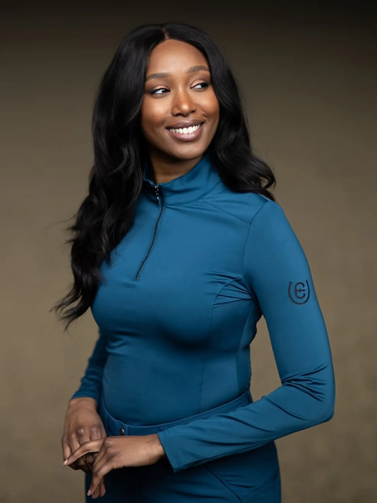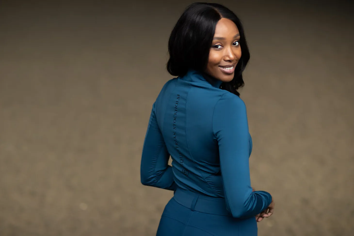 Details: Vertikales Equestrian Stockholm-Logo auf dem Rücken in Schwarz. Kleines schwarzes Equestrian Stockholm-Logo auf dem linken Arm.