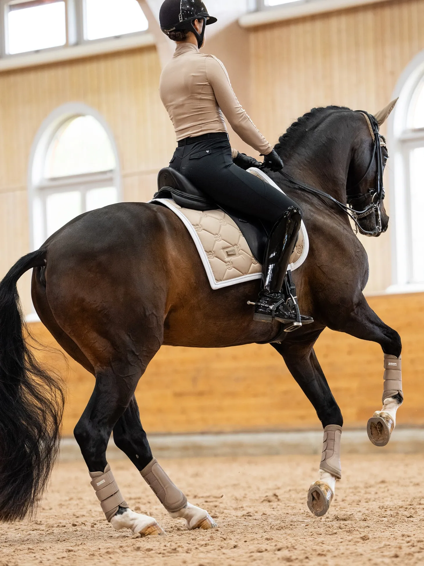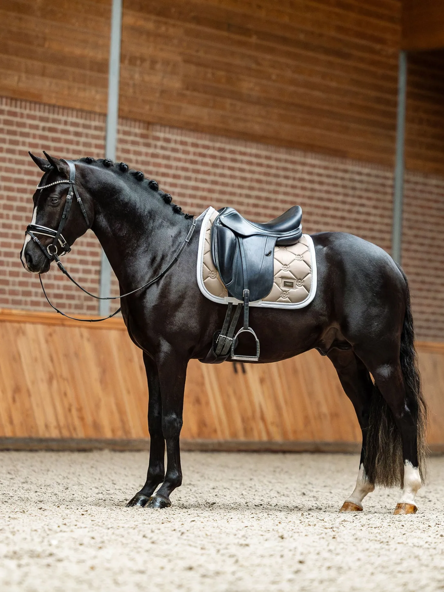 Elegante Schabracke in Beigeton mit silbernen Details. Verziert mit dem silbernen Equestrian Stockholm-Emblem. Das Material ist mit High IQ Cool Comfort behandelt, wodurch die Schabracke schnell trocknet und Feuchtigkeit ableitet. So bleibt Ihr Pferd länger trocken und frisch. Kombinieren Sie die Schabracke mit anderen Artikeln aus unserer Sand Kollektion für einen stilvollen Look von Kopf bis Fuß.
