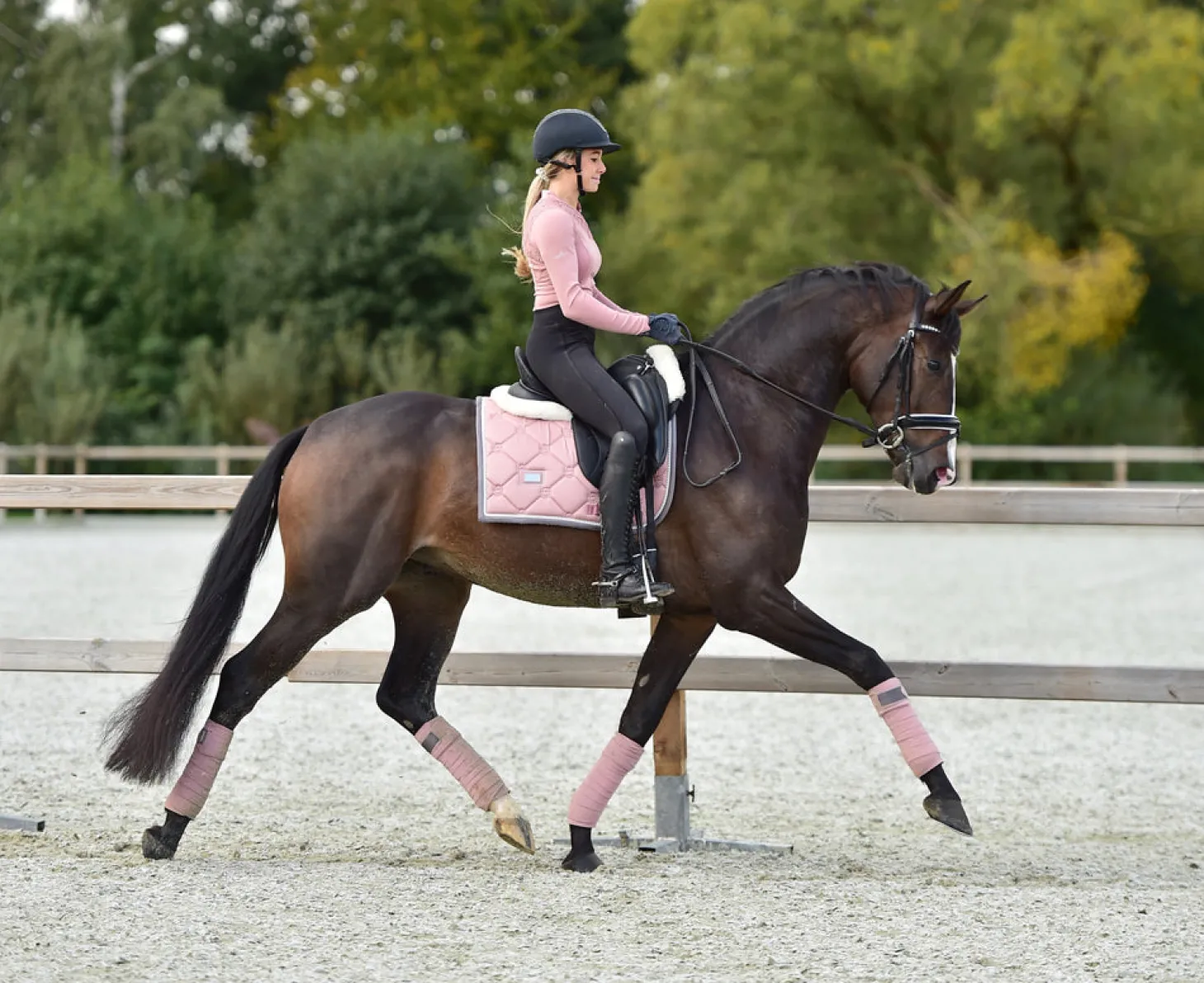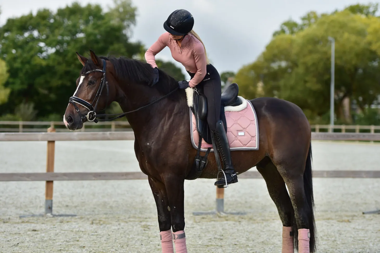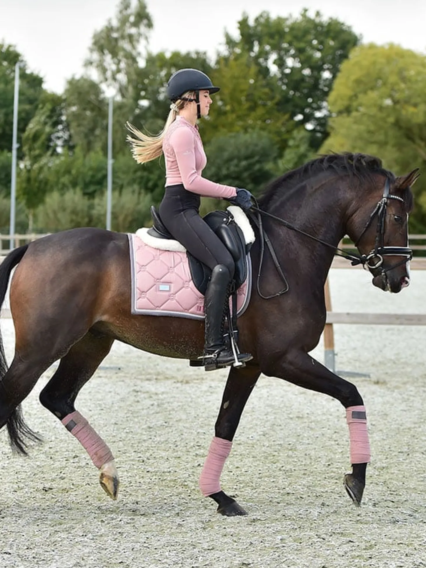 Diese pinke Dressurschabracke ist eine elegante Schabracke in Rosa mit weißen und grauen Details. Entworfen mit schönen Perlen entlang der Kante. Dekoriert mit dem Equestrian Stockholm Abzeichen in Silber. Das Material ist mit High IQ cool comfort behandelt, welches der Schabracke schnell trocknende und feuchtigkeitstransportierende Eigenschaften verleiht. So bleibt Ihr Pferd länger trocken und frisch. Kombinieren Sie die Schabracke mit anderen Teilen aus unserer Pink-Kollektion für einen stilvollen Look von Kopf bis Fuß.
