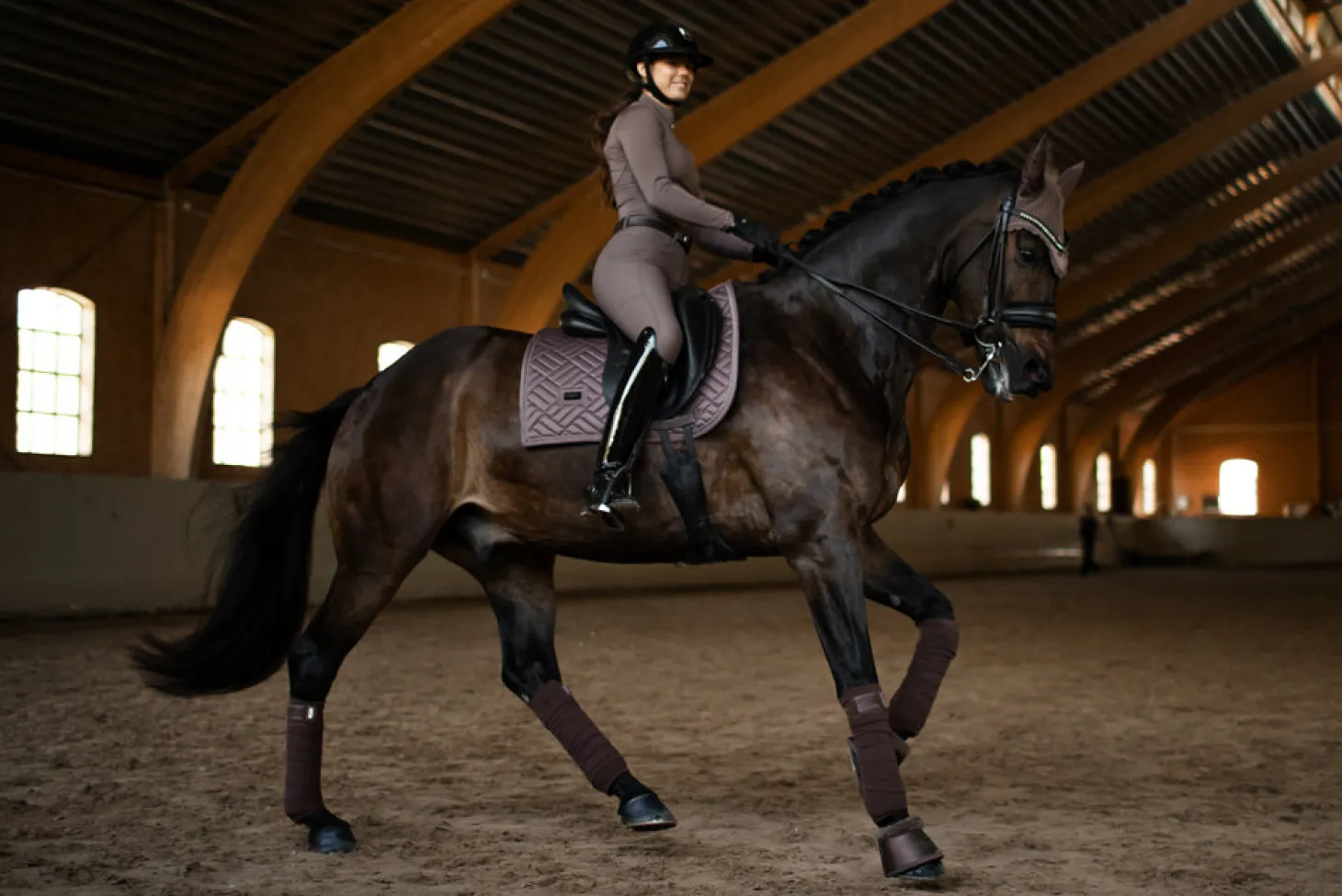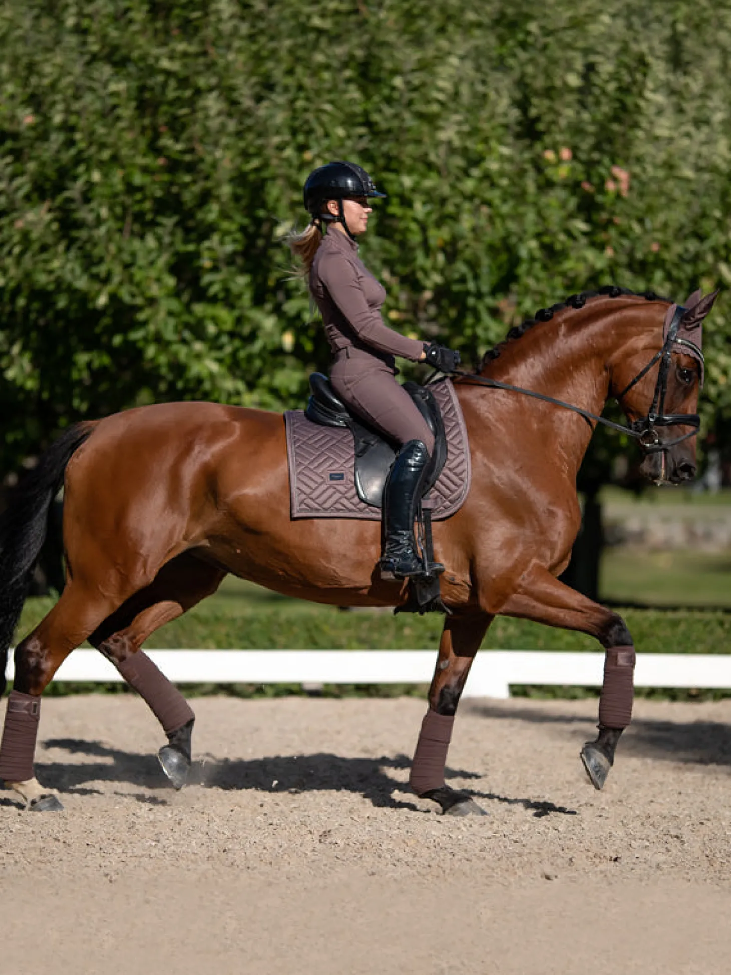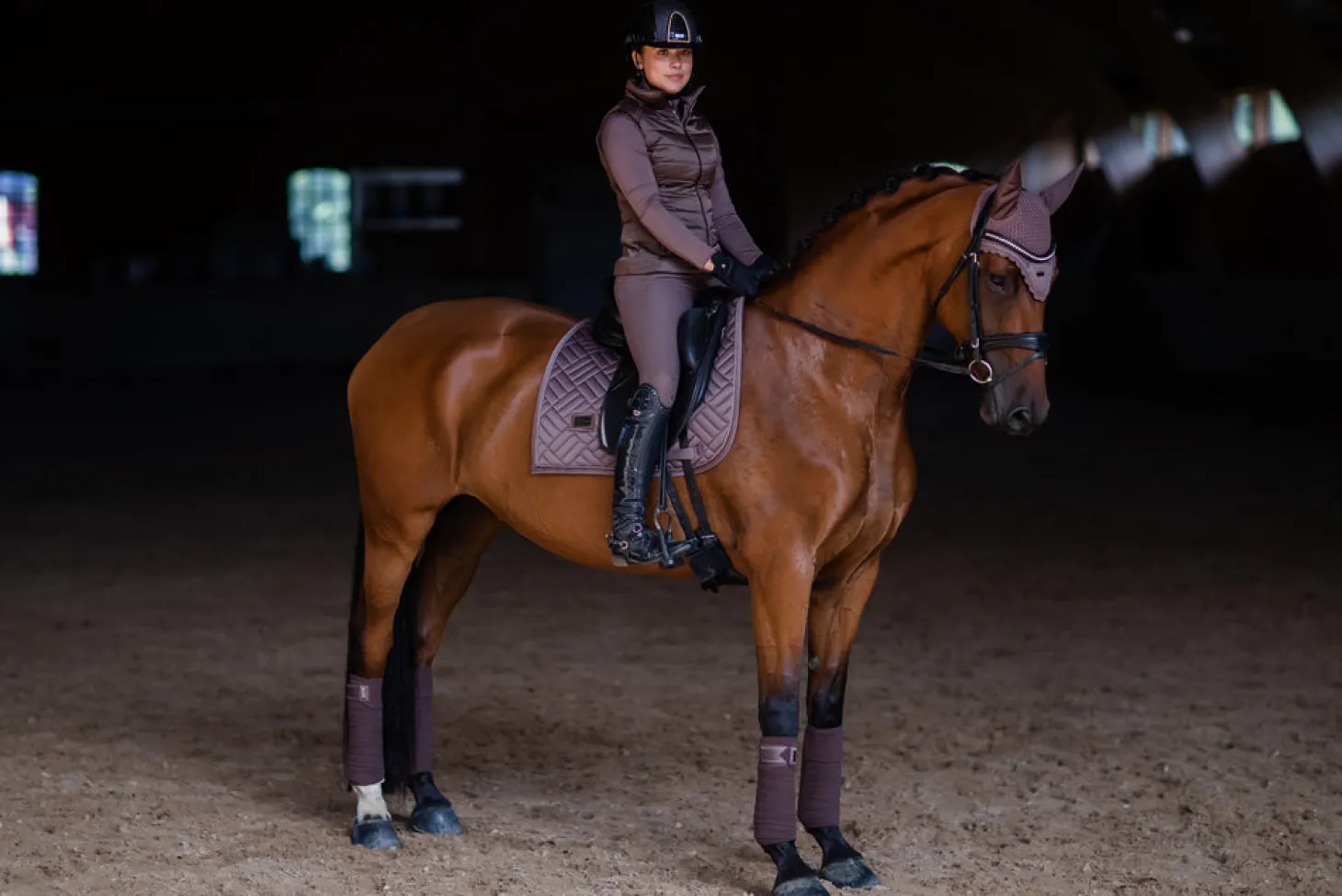 Elegante Schabracke in Braun mit einem Hauch von Lila und mit Ton-in-Ton-Metallic-Details. Verziert mit dem Equestrian Stockholm Abzeichen in Chrom. Das Material ist mit High IQ cool comfort behandelt, welches der Schabracke schnell trocken und feuchtigkeitsableitende Fähigkeiten gibt. So bleibt Ihr Pferd länger trocken und frisch. Kombinieren Sie die Schabracke mit anderen Teilen aus der Amaranth-Kollektion für einen stilvollen Look von Kopf bis Fuß.