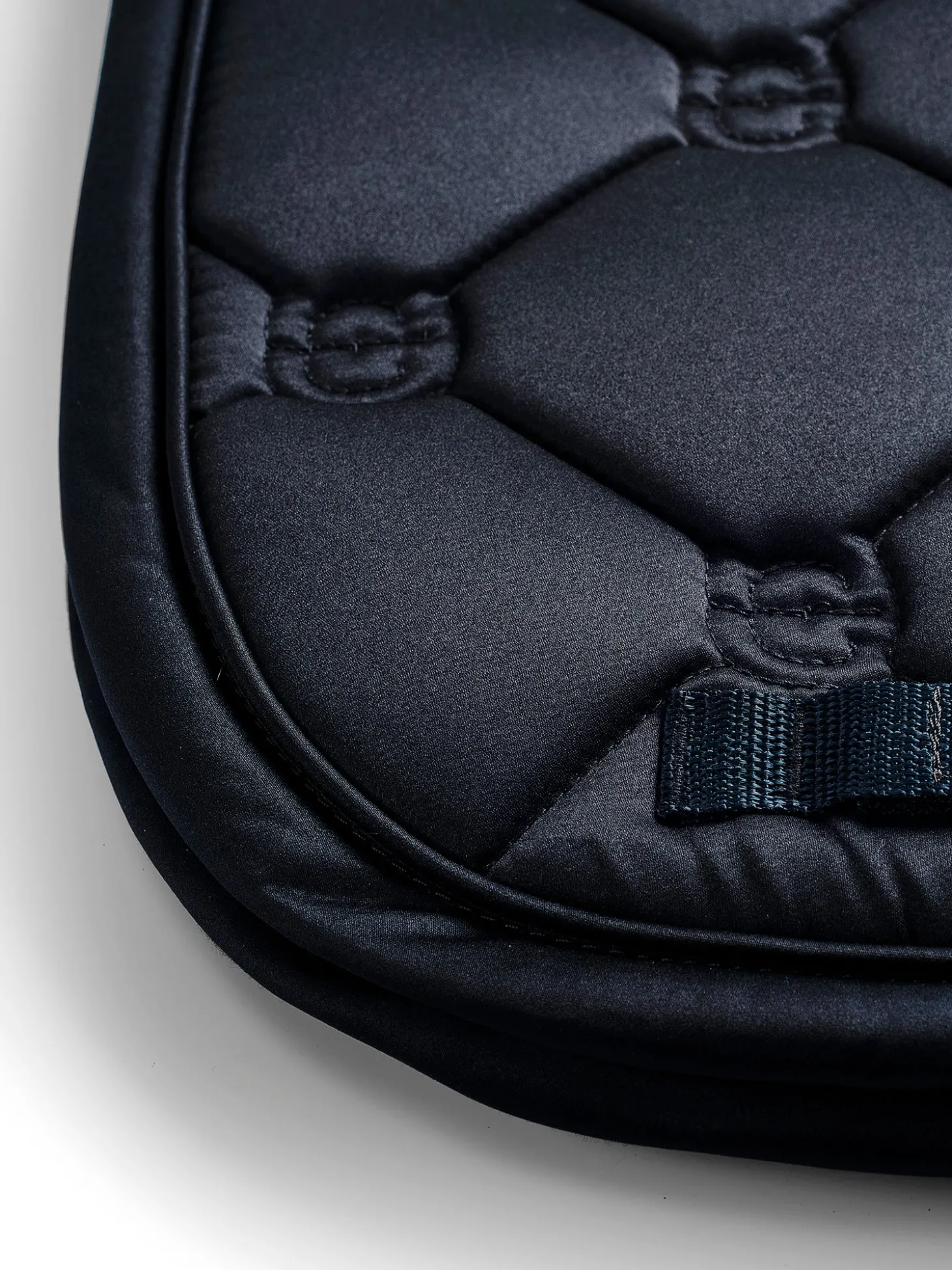 Elegante Schabracke in Marineblau mit marineblauen und weißen Details. Optimiert mit einem breiten Silikon Grip Panel auf der Sattelfläche, das Sie stabil während des Rittes hält. Verziert mit dem Equestrian Stockholm Abzeichen in Silber. Das Bambusmaterial ist aufgrund seiner thermoregulierenden Wirkung das ganze Jahr über perfekt – kühlend im Sommer und wärmend im Winter. Außerdem ist es schnelltrocknend, feuchtigkeitsableitend und antibakteriell. Kombinieren Sie die Schabracke mit anderen Teilen aus der Modern Tech Navy Kollektion für einen stilvollen Look von Kopf bis Fuß.