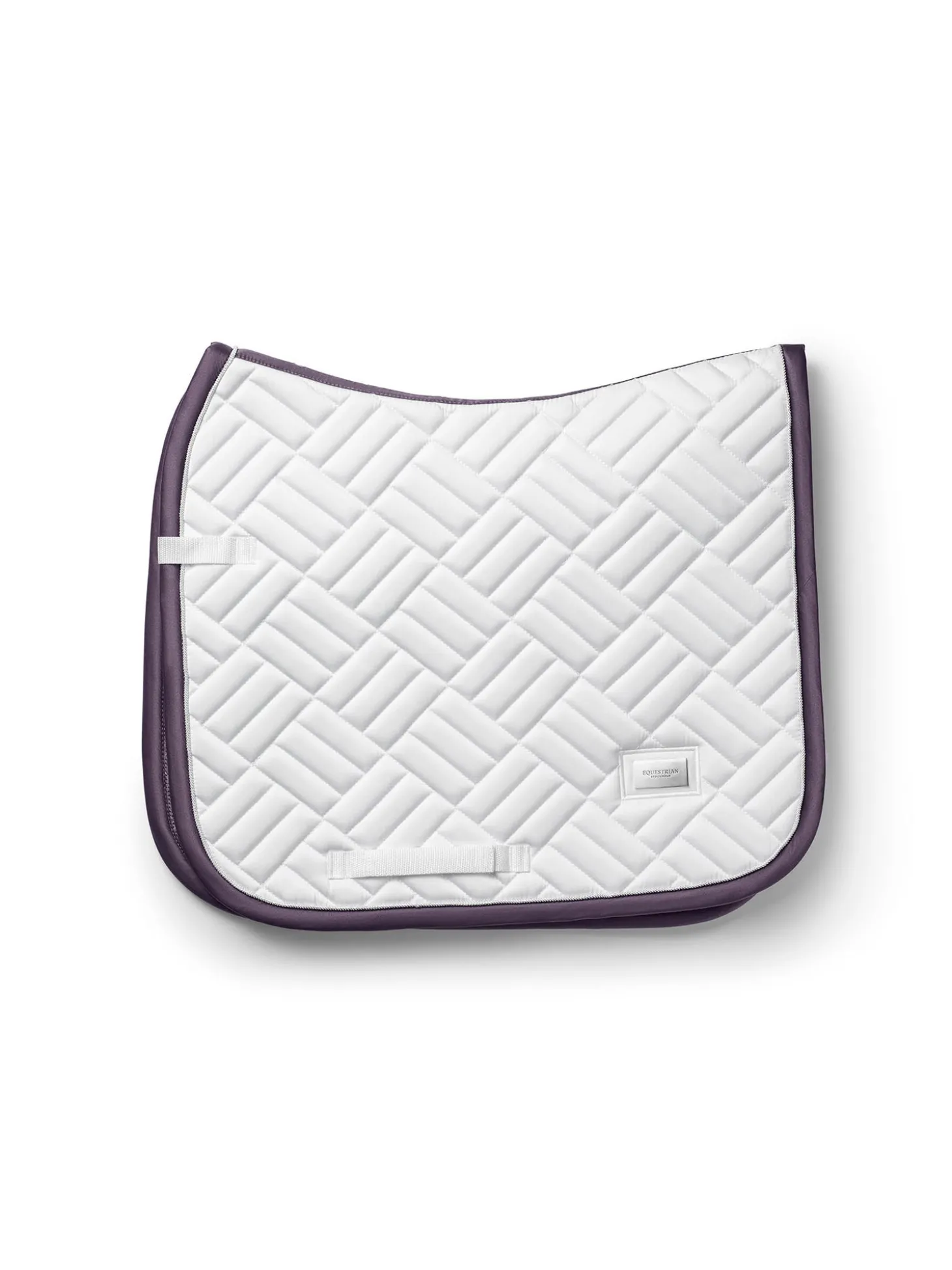 Elegante Schabracke mit modernem Steppmuster in Weiß mit silbernen Details. Verziert mit dem Equestrian Stockholm Abzeichen in Silber. Das Bambusmaterial ist aufgrund seiner thermoregulierenden Wirkung – kühlend im Sommer und wärmend im Winter – das ganze Jahr über perfekt geeignet. Es ist außerdem schnell trocknend, feuchtigkeitstransportierend und antibakteriell. Kombinieren Sie die Schabracke mit anderen Teilen aus der Dark Violet Kollektion für einen stilvollen Look von Kopf bis Fuß.