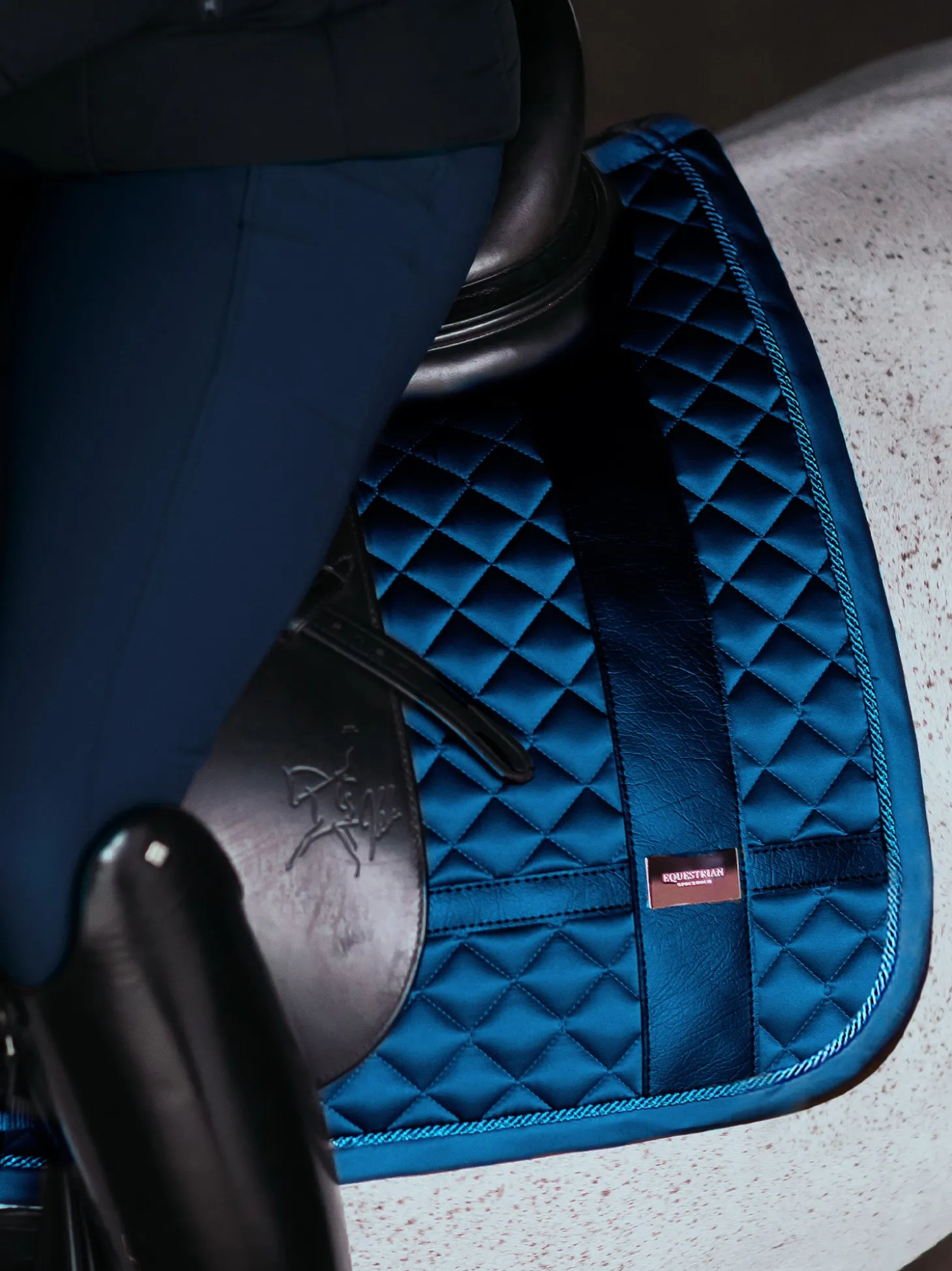 No Boundaries Monaco Blue ist die perfekte Dressurschabracke für alle, die eine exklusive Schabracke mit sportlichem Design haben möchten. Designt in einem luxuriösen Blau mit Details aus marineblauem Leder und mit dem stilvollen Equestrian Stockholm-Muster gesteppt. Hergestellt aus einem glänzenden, schmutzabweisenden Material, das atmungsaktiv ist und Ihr Pferd bei schweißtreibenden Trainingseinheiten trocken hält. Verziert mit einem stilvollen Equestrian Stockholm Abzeichen in Roségold.