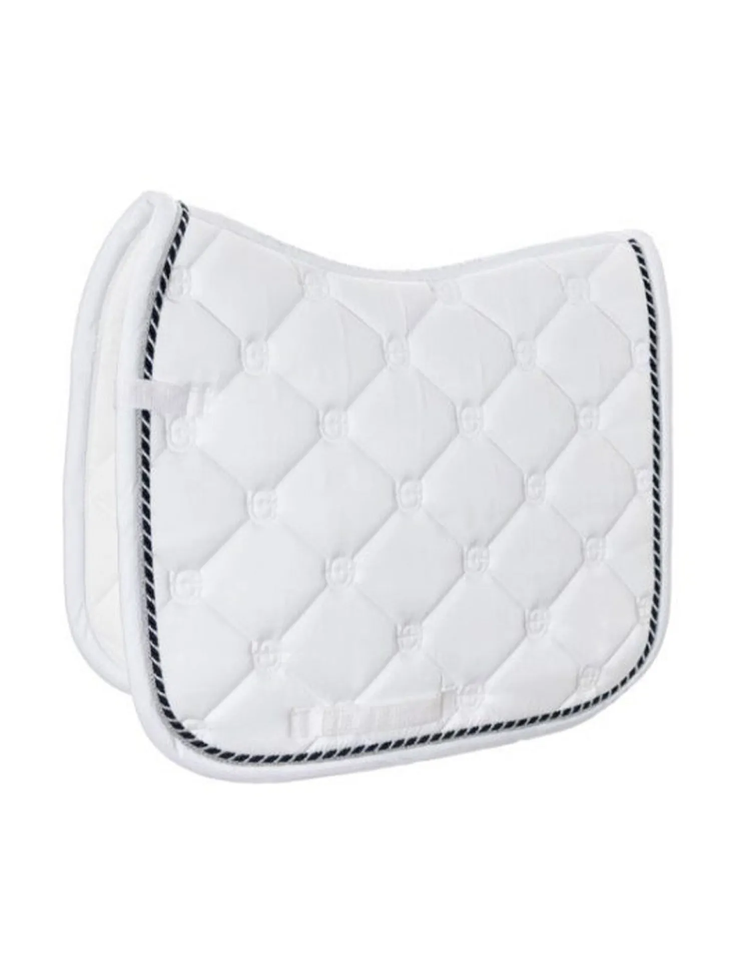 Sei mit dieser White Perfection Schabracke ein wahrer Champion! Unsere hochwertige Dressurschabracke in Shiny White ist ideal für Turniere. Das Material der Schabracke glänzt und ist schmutzabweisend.