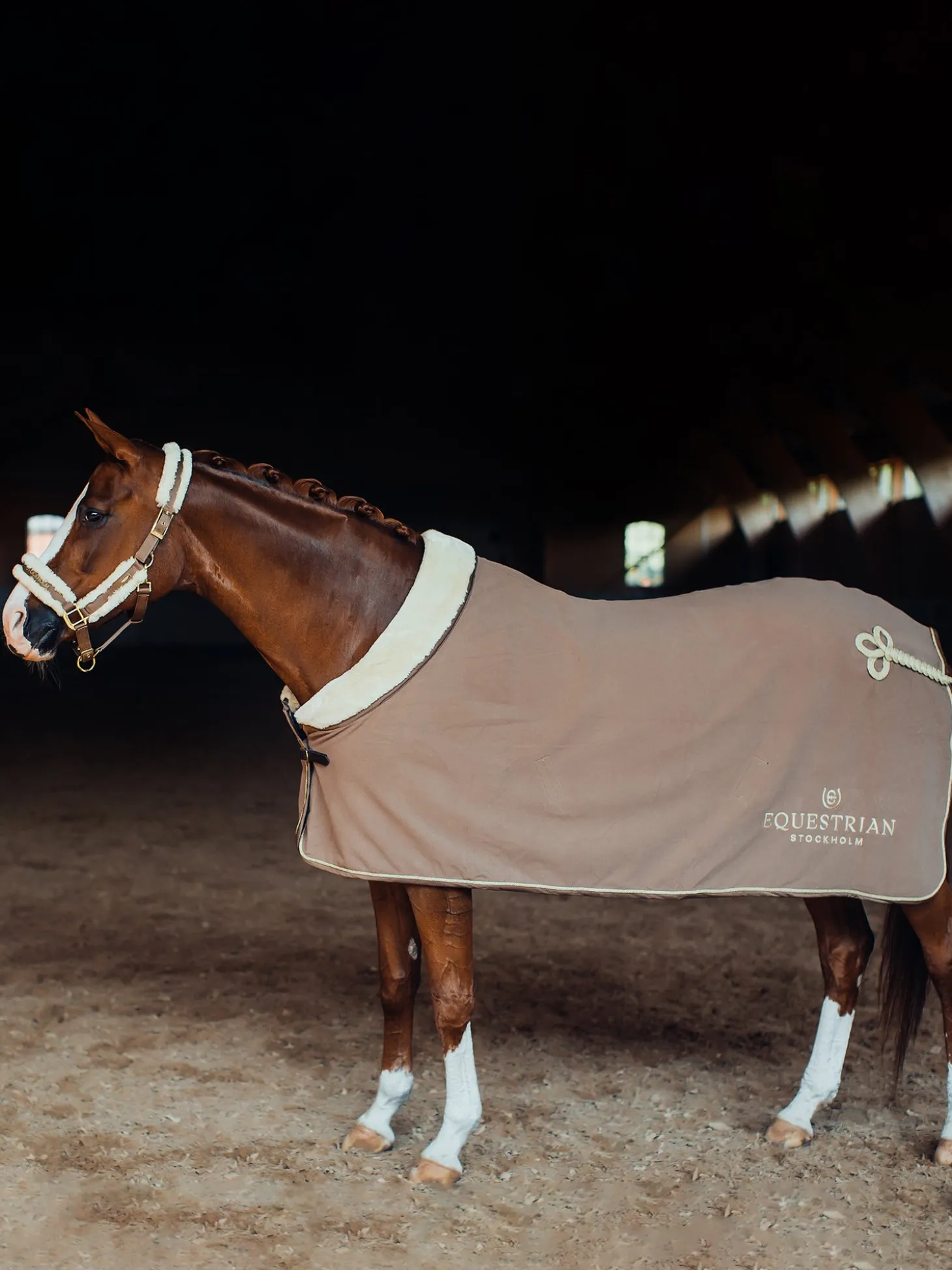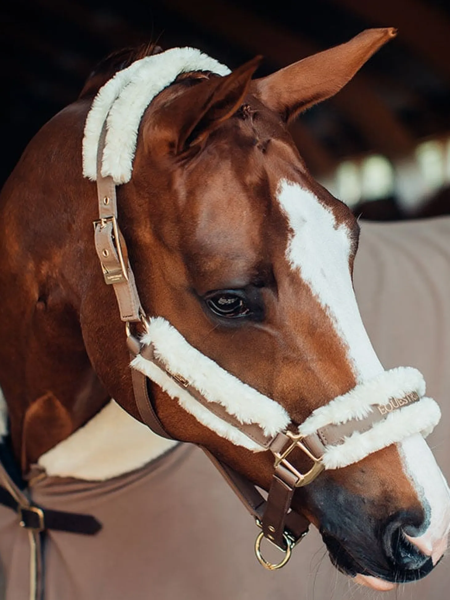 Luxuriöse Fleecedecke in Champagne mit wunderschönen, aufwendigen Borten und gold Details. Die Schnalle ist mit Leder-Imitat eingefasst und hat außerdem einen Klettverschluss. Um Scheuern zu verhindern ist die Decke an der Schulter zusätzlich mit einem Polyester Futter ausgekleidet. Die Abschwitzdecke passt perfekt zu den anderen Produkten unserer Champagne Serie.