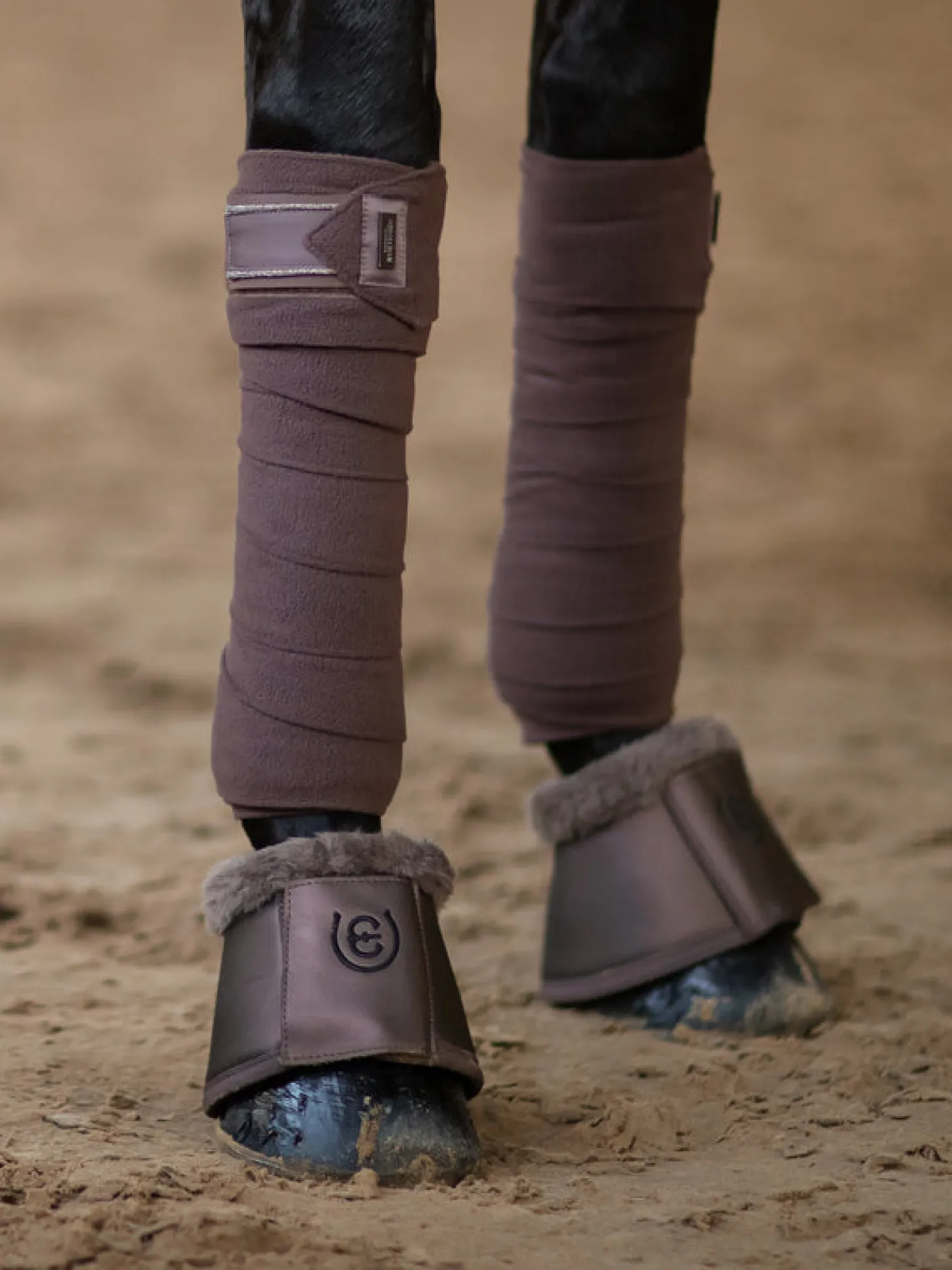 Hochwertige Fleece-Bandagen in einem stilvollen Braun mit einem Hauch von Lila. Verziert mit Ton-in-Ton-Satin-Details und einem Equestrian Stockholm-Abzeichen in Chrom. Kombinieren Sie die Bandagen mit der Schabracke und der Fliegenhaube aus der Amaranth-Kollektion, um einen glamourösen Look zu kreieren. Verkauft im Viererset