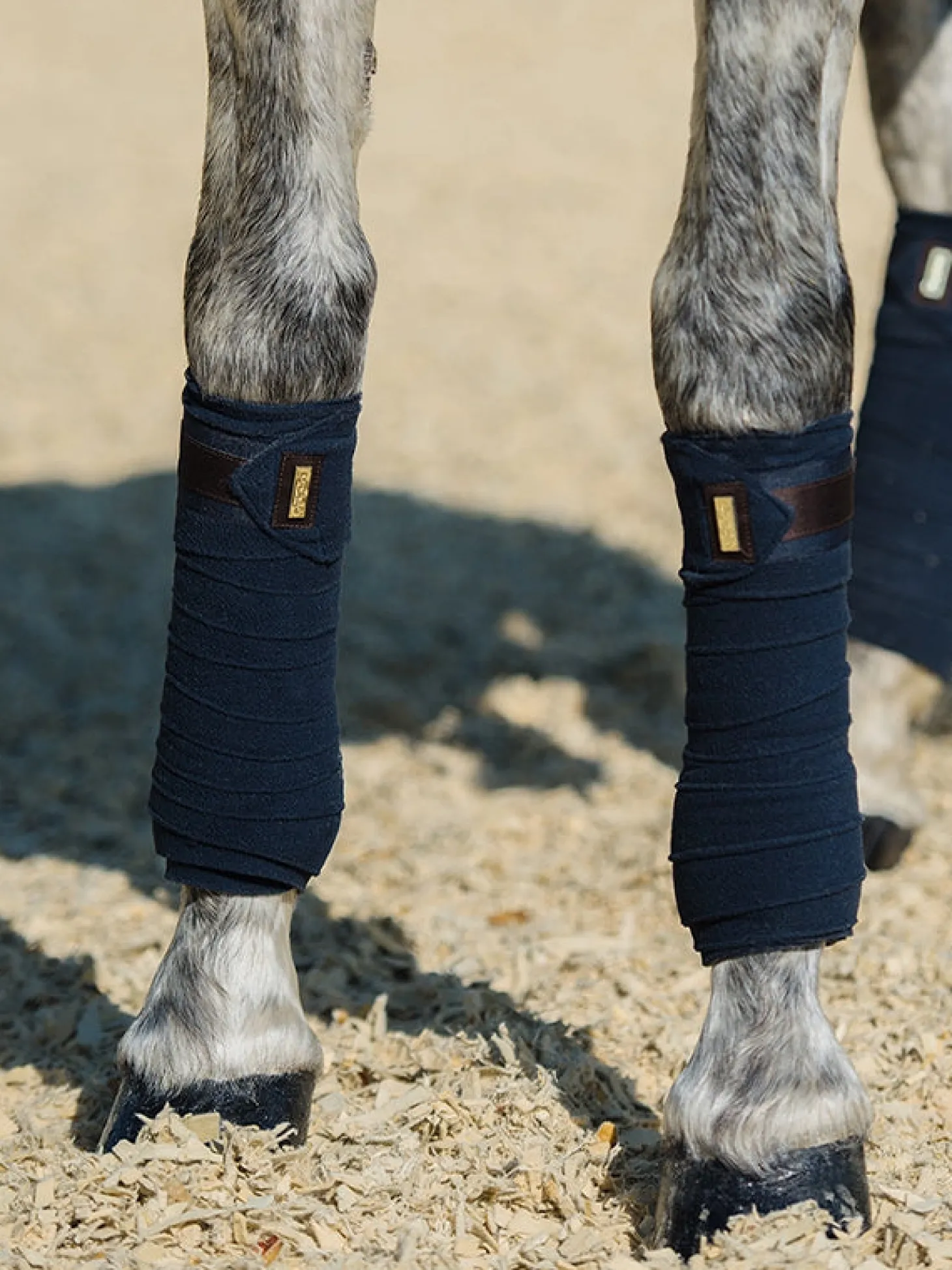 Neu erhältlich sind Bandagen, die zu der schönen Schabracke „Royal Classic“ passen! Schöne, qualitativ hochwertige Fleece-Bandagen. Die hochwertigen Details in Gold und Dark Brown liegen immer im Trend. Die Bandagen werden im Viererpack verkauft.Diese Bandagen liegen immer im Trend!
