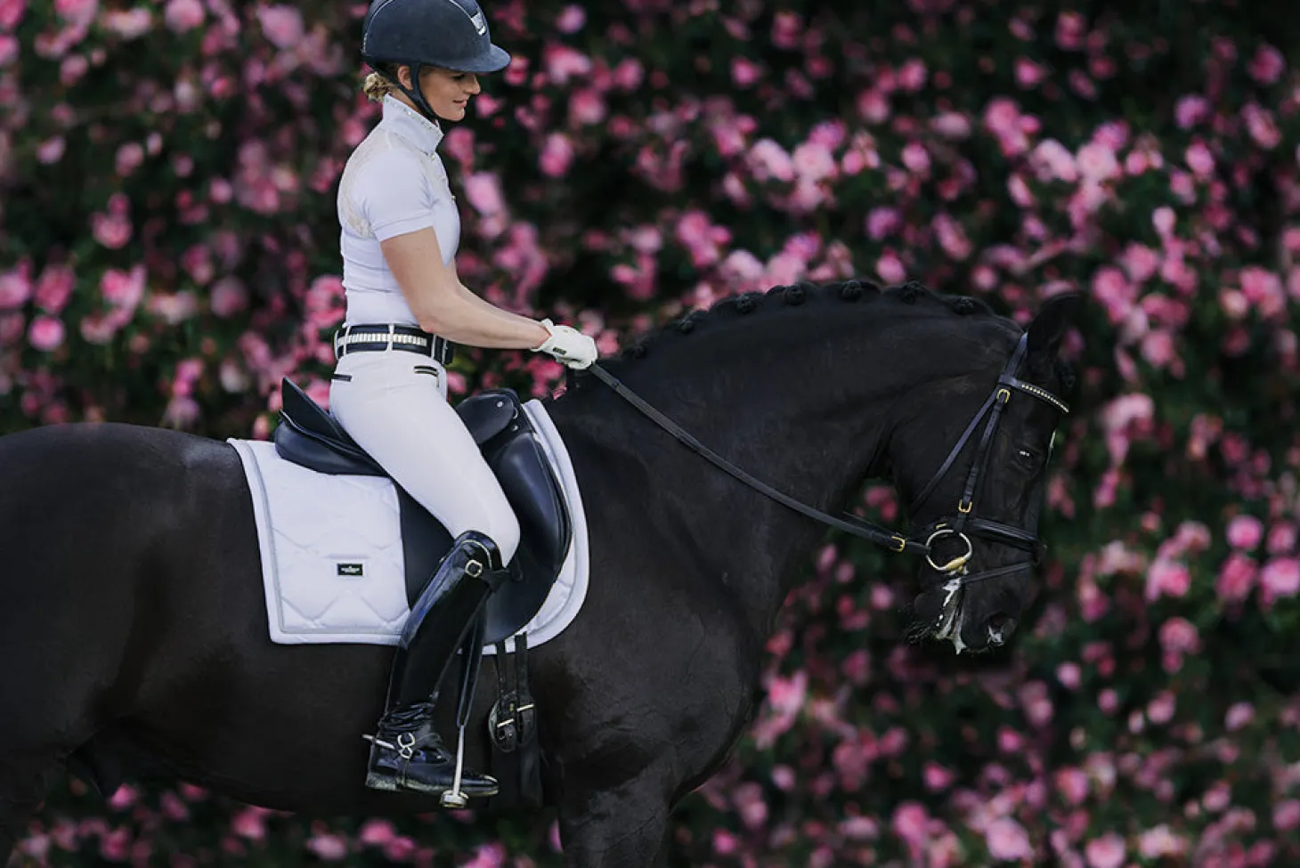 Die hochwertigen, silberfarbenen Details passen perfekt zur Schabracke „White Perfection Silver“.