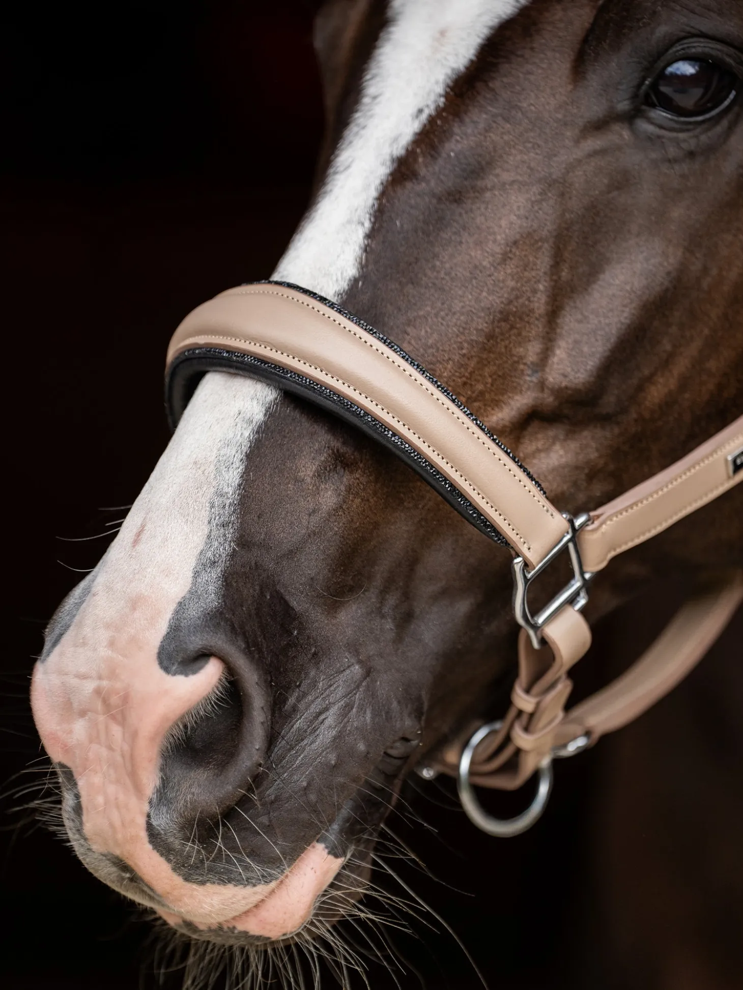 Das anatomische Lederhalfter von Equestrian Stockholm wurde mit einem breiteren Genickstück entwickelt, das anatomisch gepolstert ist, um den Druck auf eine größere Fläche im empfindlichen Bereich des Genicks des Pferdes zu verteilen. Die anatomisch geformte Konstruktion des Halfters sorgt für Komfort für Ihr Pferd und eignet sich perfekt für Turniere und den Transport. Die Größe lässt sich einfach und schnell sowohl auf der rechten als auch auf der linken Seite des Pferdekopfes einstellen. Unser luxuriöses anatomisches Turnierhalfter ist in einem eleganten Beige gehalten und mit wunderschönen schwarzen Kristallen entlang des gesamten Nasenriemens verziert, die Ihr Pferd fantastisch aussehen lassen und es bei Turnieren hervorstechen lassen.
