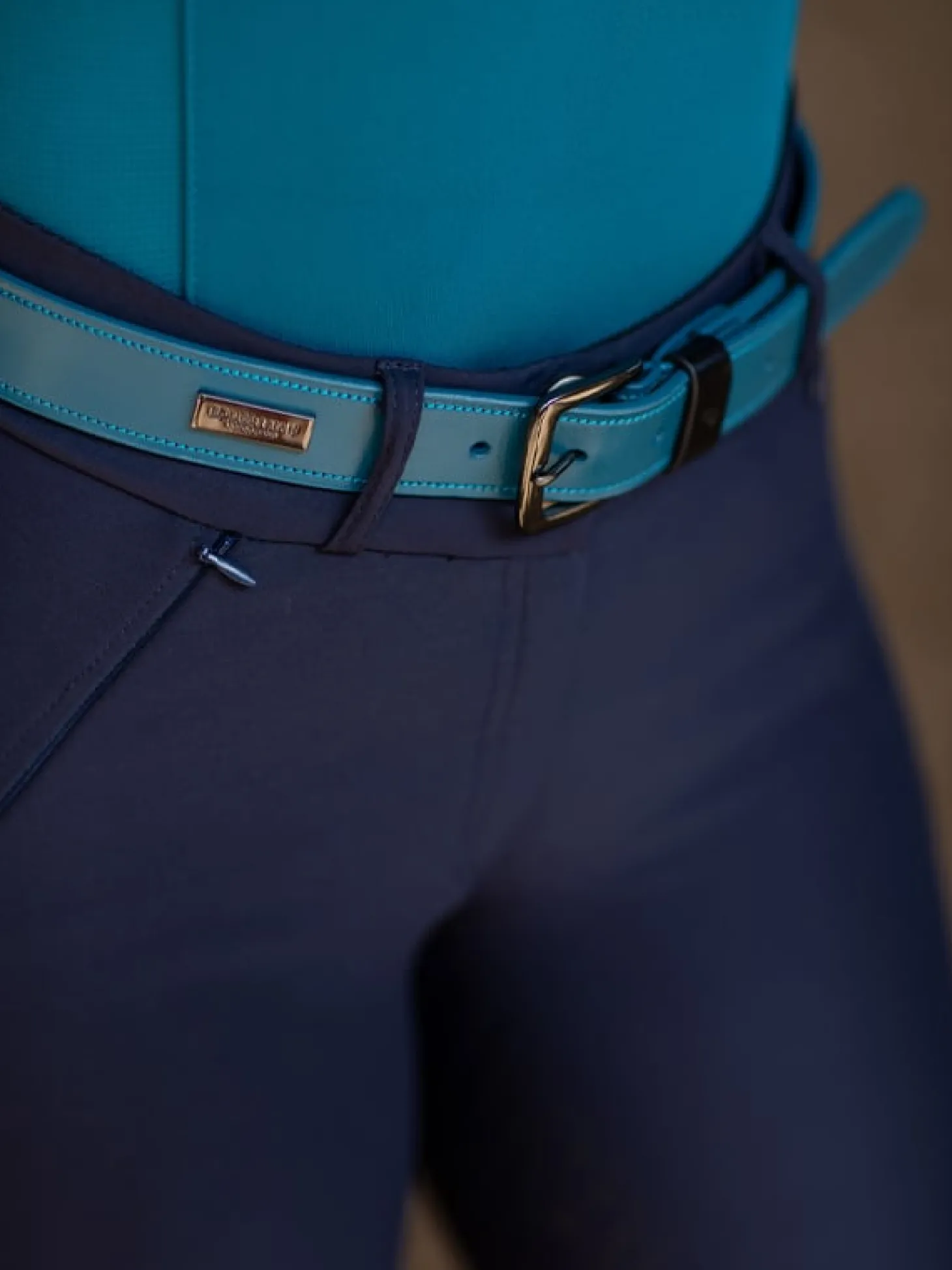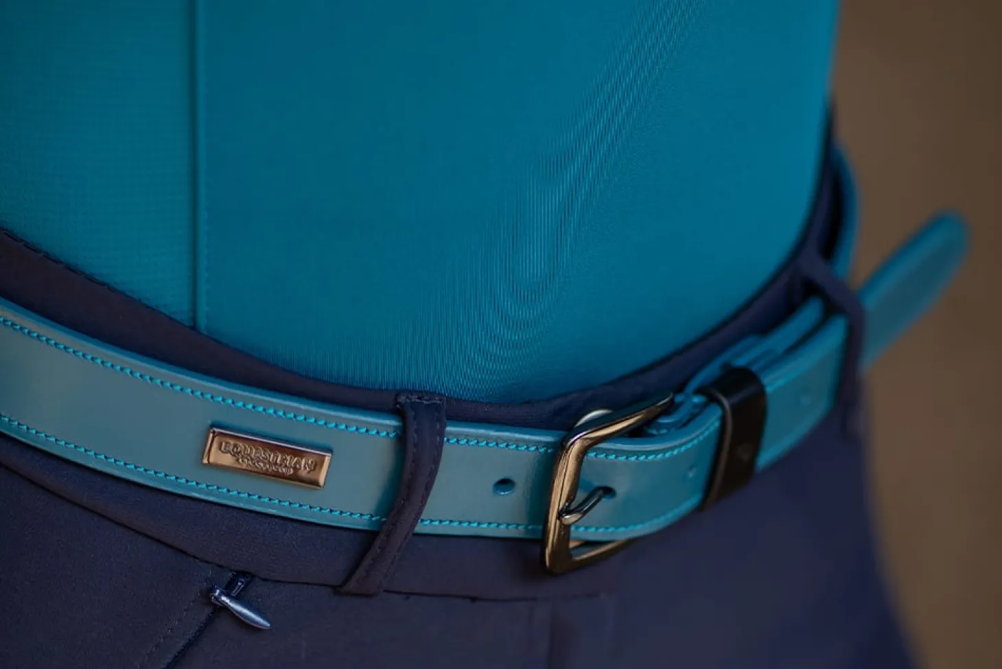 Exklusiver Ledergürtel in sauberem Design in schönem Blau mit einem Hauch von Grün und mit einer Schnalle in Chrom / schwarzem Nickel. Verziert mit dem Equestrian Stockholm Logo auf einer verchromten Metallplakette. Erhältlich in einer breiten Größenpalette.