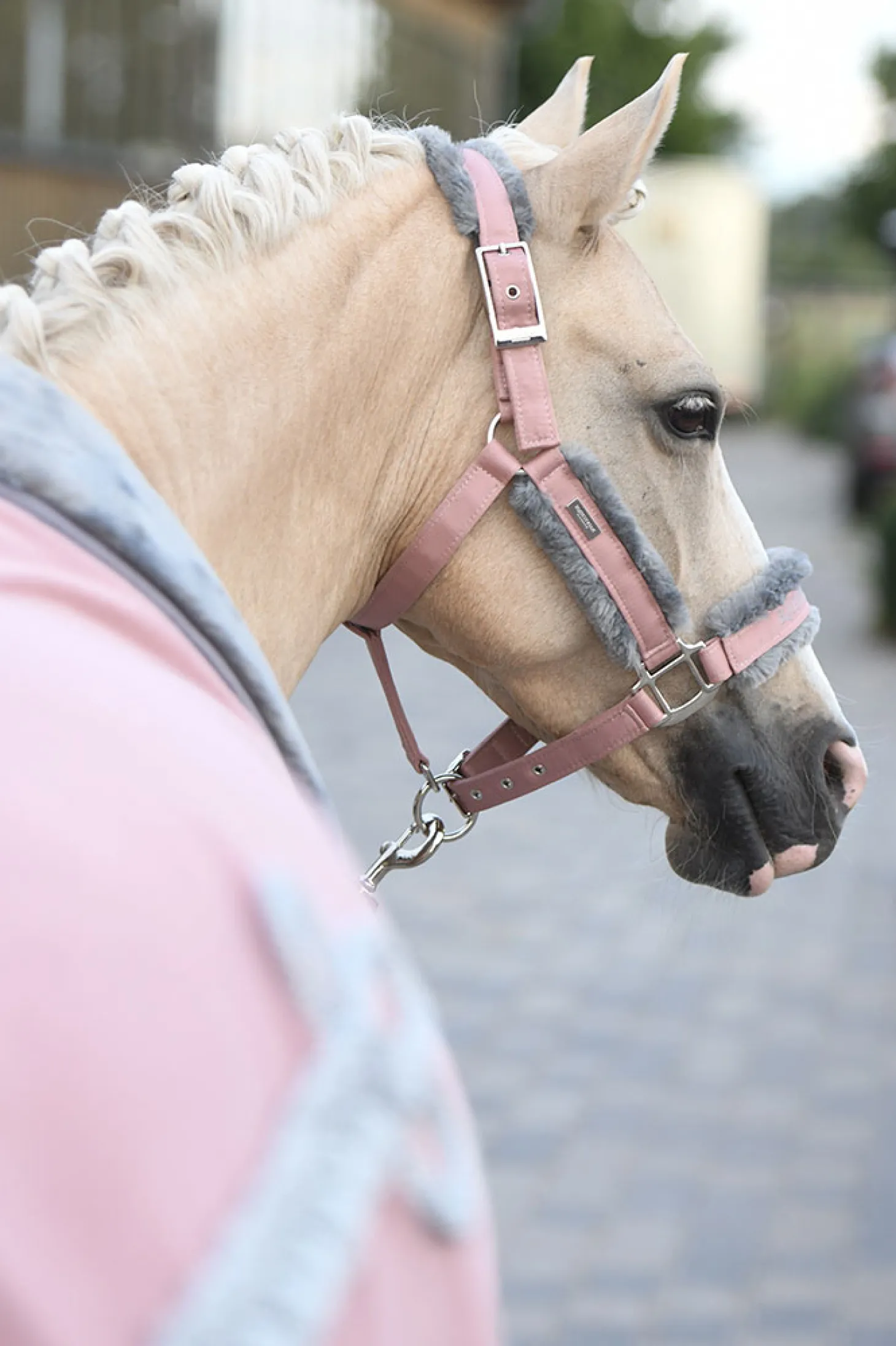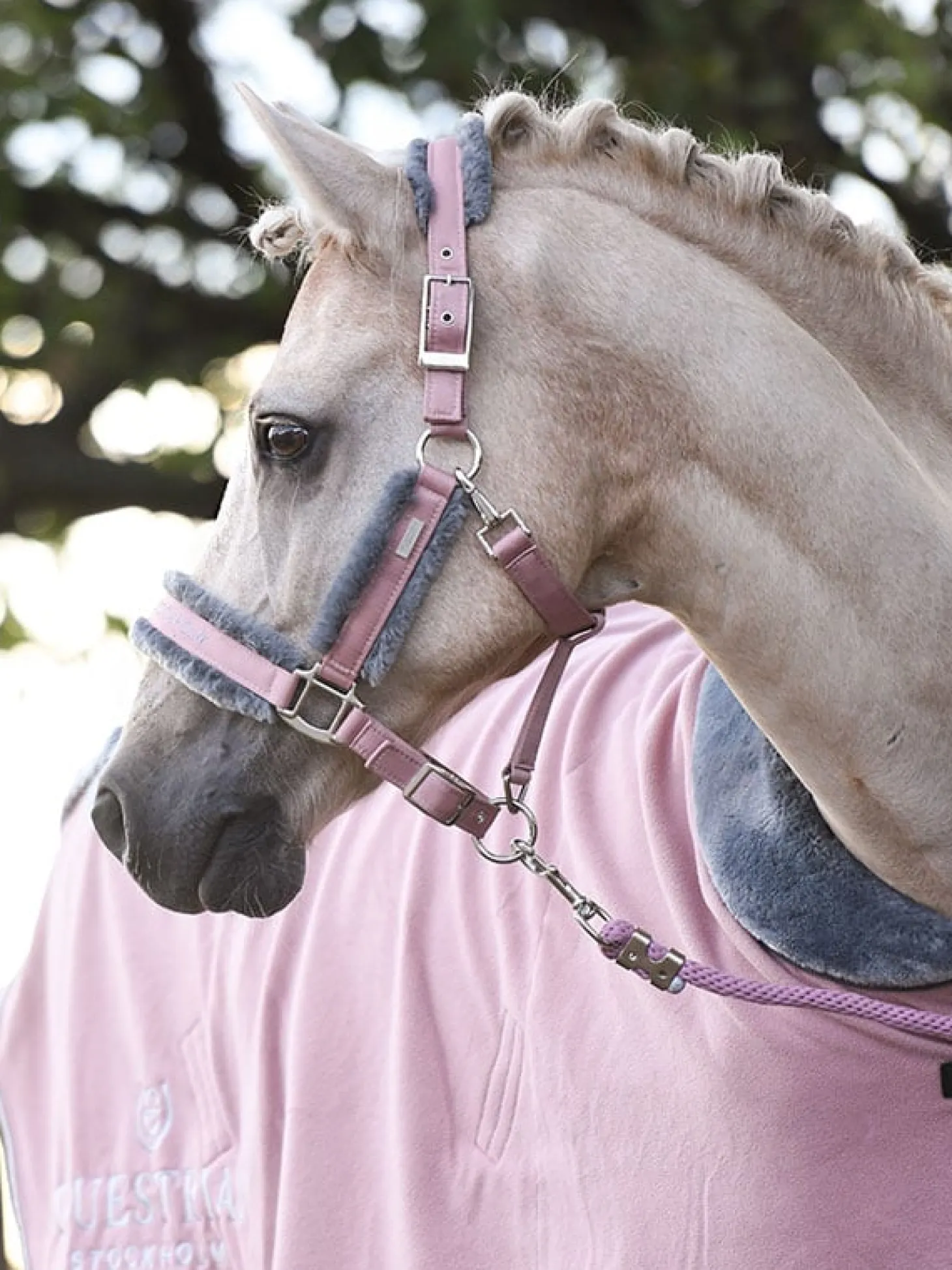 Flauschiges und kuscheliges Halfter mit weichem Teddy-Fleece-Kunstfell. Entworfen in elegantem Rosa, mit grauem Teddyfell und silbernen Schnallen. Verziert mit dem stilvollen Equestrian Stockholm Abzeichen in Silber und Equestrian Stockholm Logo auf dem Nasenriemen. Kombinieren Sie das Halfter mit anderen Teilen aus der Pink Kollektion für einen stilvollen Look von Kopf bis Fuß.
