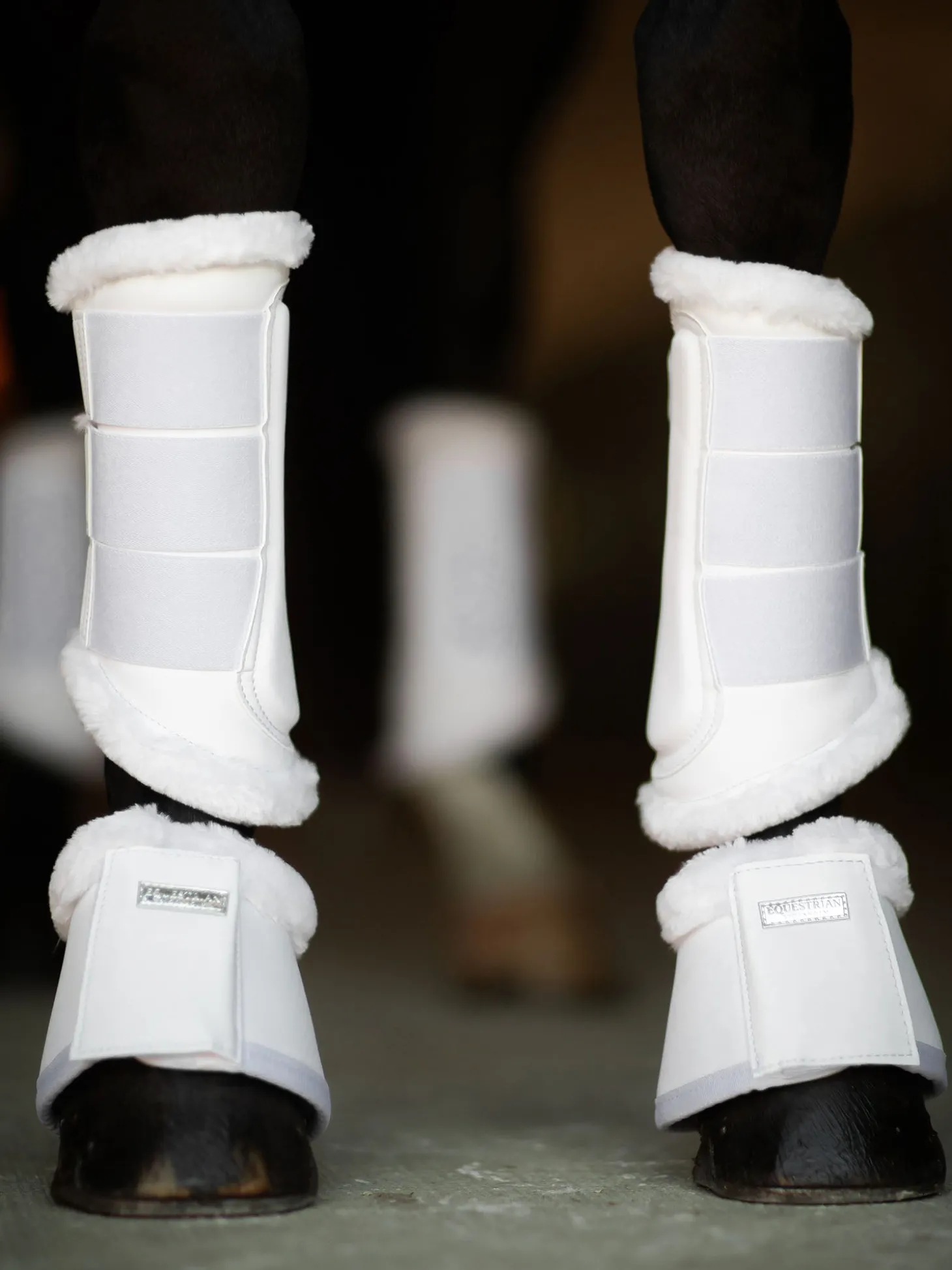 Verbessern Sie Ihren Stil mit diesen hochwertigen Hufglocken aus glänzendem Kunstleder. Entworfen in einem sauberen Weißton mit weißem Teddyfutter. Superweiches Teddyfutter auf der Innenseite am Pferdebein.