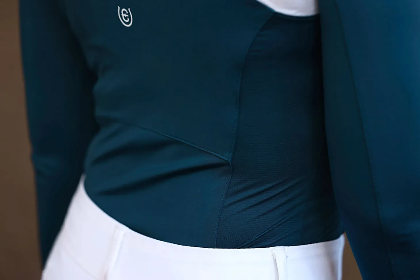Details: Vertikales Equestrian Stockholm-Logo auf dem Rücken in Weiß. Kleines Equestrian Stockholm-Logo in klaren Kristallen auf der linken Seite des Kragens.