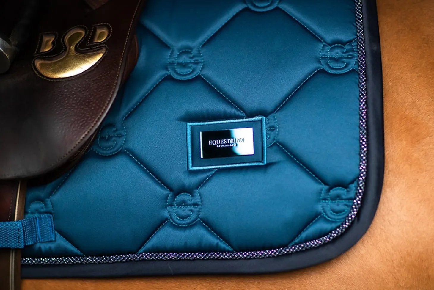 Elegante Schabracke in Blau mit marineblauen und blauen Metalldetails. Verziert mit dem Equestrian Stockholm Abzeichen in Dunkelblau. Das Bambusmaterial ist aufgrund seiner thermoregulierenden Wirkung das ganze Jahr über perfekt – kühlend im Sommer und wärmend im Winter. Außerdem ist es schnelltrocknend, feuchtigkeitsableitend und antibakteriell. Kombinieren Sie die Schabracke mit anderen Teilen aus der Blue Meadow Kollektion für einen stilvollen Look von Kopf bis Fuß.