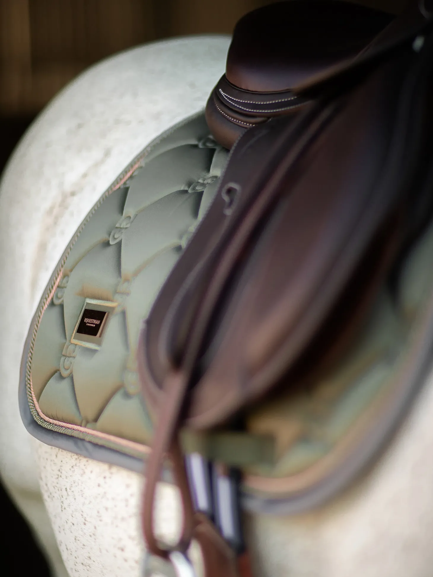 Elegante Schabracke in Olivgrün mit roségoldenen und grauen Details. Dekoriert mit dem Equestrian Stockholm Abzeichen in Roségold. Das Material ist mit High IQ cool comfort behandelt, wodurch die Schabracke schnell trocknend und feuchtigkeitstransportierend ist. So bleibt Ihr Pferd länger trocken und frisch. Kombinieren Sie die Schabracke mit anderen Teilen aus unserer Striking Valley Kollektion für einen stilvollen Look von Kopf bis Fuß.